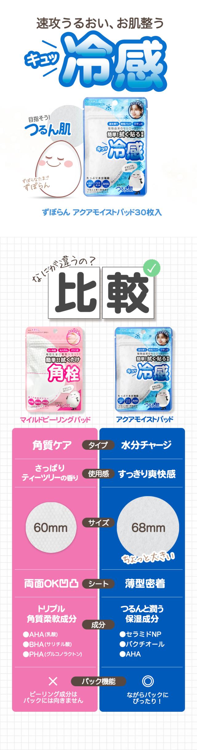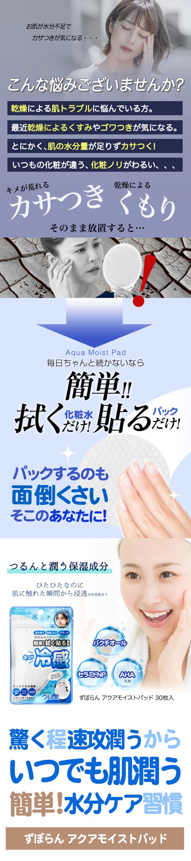 ずぼらん アクア モイスト パッド 【 単品 】 30枚 拭き取り トナーパッド 冷感 セラミドNP バクチオール AHA ノンアルコール 保湿 アクア 化粧水パッド 韓国