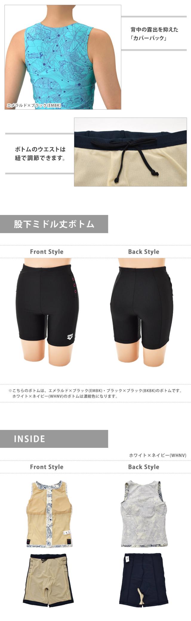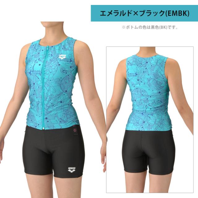13%OFF 送料無料 arena アリーナ フィットネス水着 ラン型 レディース めくれ防止 ミドル丈 AS5FWF52L M L O 返品交換不可 フィットネス 水着 上下 セパレート 上下セット 水泳 スイミング ジム プール おしゃれ ホワイト エメラルド ブラック
