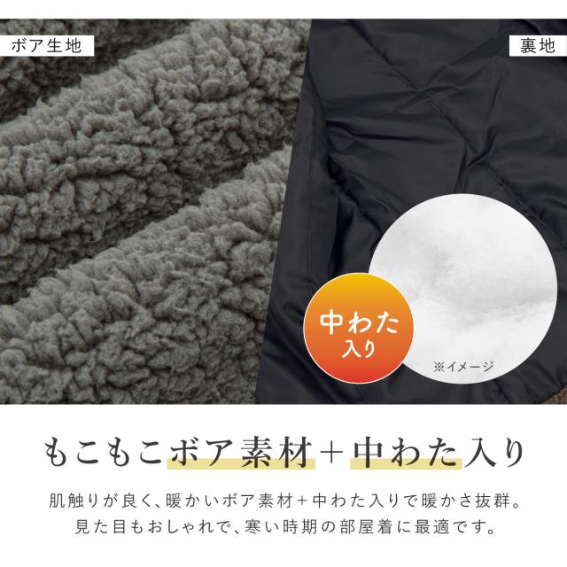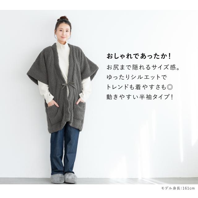はんてん 半袖 おしゃれ 半纏 レディース メンズ 共用 やっこ 奴 ちゃんちゃんこ 冬 防寒 あったか 綿入り ふわもこ ボア ルームウェア 無地 部屋着 グレー 灰 敬老の日 ギフト floro プレゼント M L 送料無料
