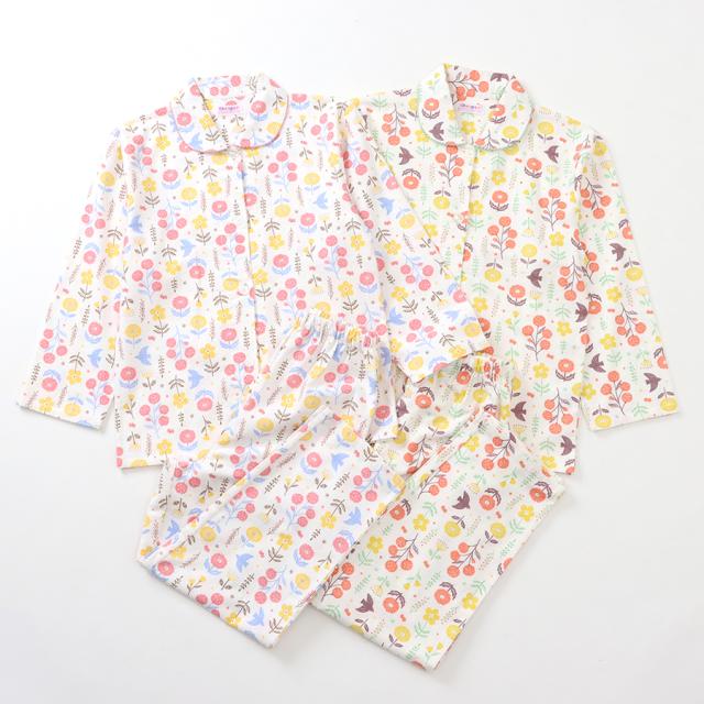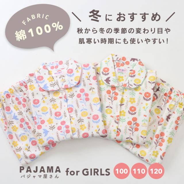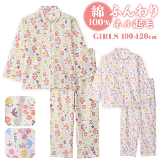 パジャマ キッズ 女の子 綿100% 長袖 冬向き 前開き ネル起毛 北欧風のお花柄 アイボリー クリーム 100 110 120 子供 キッズ ジュニア ガールズ かわいい 親子 おそろい リンクコーデ 家族 ギフト プレゼント 81175tod