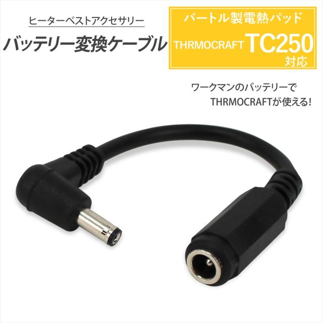 バートル 電熱パッド TC250 バッテリー変換ケーブル ワークマン バッテリー BURTLE サーモクラフト ヒーターベスト 防寒ベスト 【CV-B】 THERMOCRAFT 防寒ジャケット ヒートベスト 電熱ベスト サーモクラフト 変換アダプター WZ3000 WZ3150 WZ3300