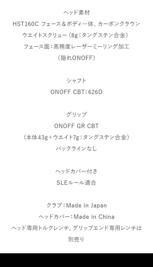 オノフ KURO ドライバー 2025年モデル CBT:626D カーボンシャフト[ONOFF][黒シリーズ 標準シャフト]