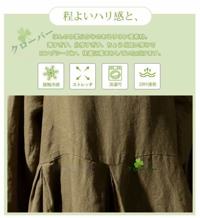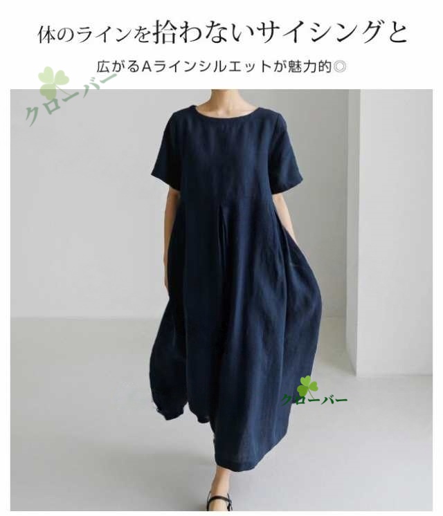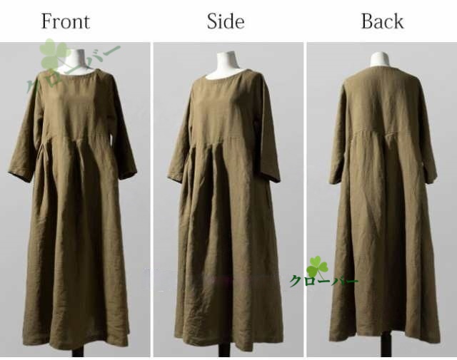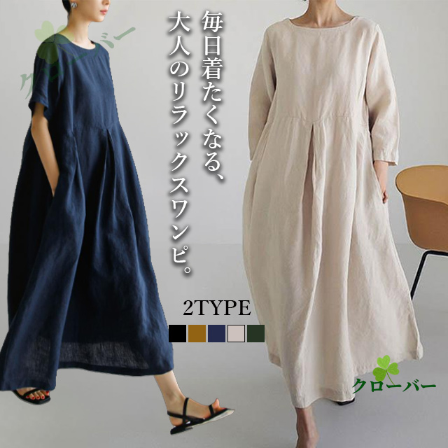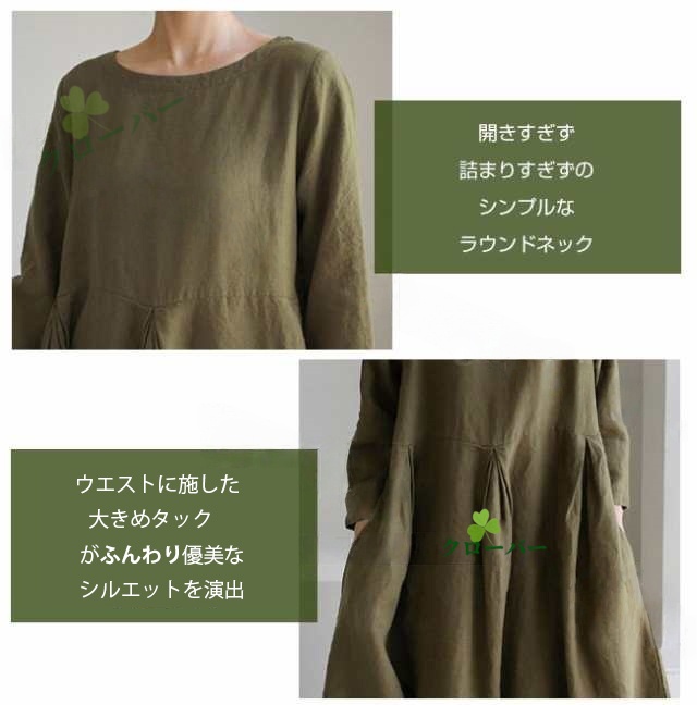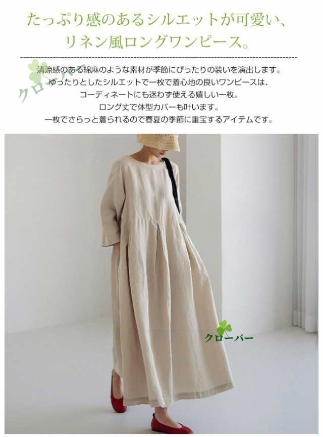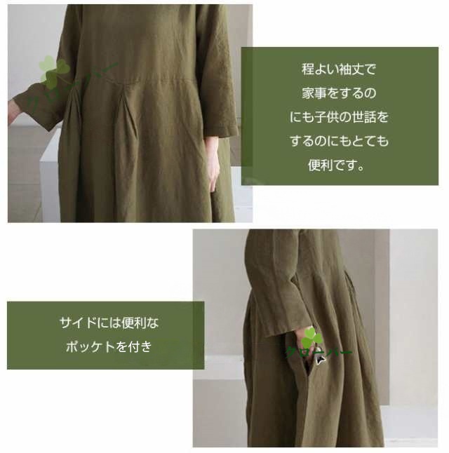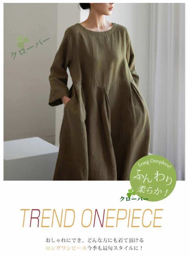 ワンピース ロングワンピース コットンリネン 綿麻 長袖 大きいサイズ カジュアル 大人 春 夏 ゆったり 体型カバー おしゃれ マキシ丈 無地