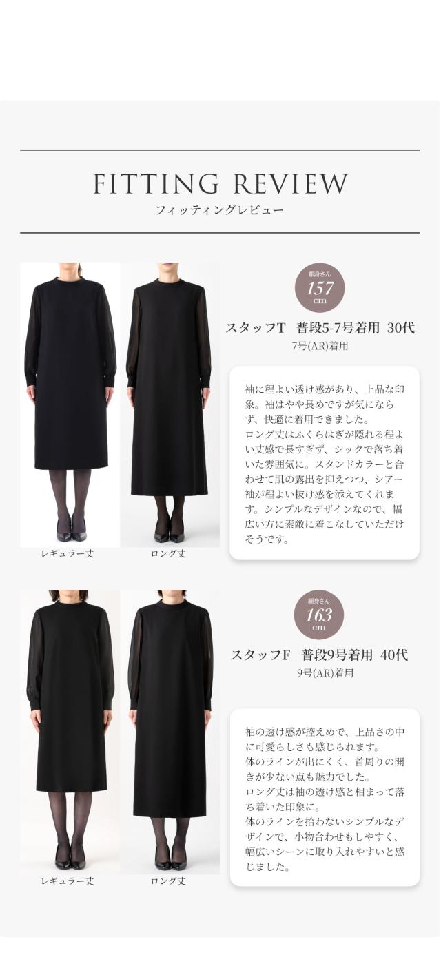説明 | しなやかな佇まいと凛とした美しさを叶えるブラックフォーマルワンピース。 冠婚葬祭やフォーマルな場にふさわしい、端正な一着です。 柔らかな透け感のある袖が、女性らしい優雅さを引き立てます。 くるみボタンがアクセントとなるカフス袖と、凛とした印象のスタンドカラーが魅力。 脚さばきの良いフェイクスリット入りで、見た目の美しさと機能性を両立しました。 両サイドにはポケットを備え、ハンカチや小物の収納にも便利です。 丈はレギュラー丈・ロング丈の2種類からお選びいただけます。 さらに季節を問わず活躍できるのも魅力。 夏はワンピース1枚で軽やかに、冬はインナーを重ねて快適に。通年を通して頼れる一着です。 細部にまでこだわり抜いたデザインが、着る人の品格をより一層引き立てます。 優美さと実用性を兼ね備えた、大人のためのフォーマルワンピース。大切な一日に、自信と安心をもたらします。 |