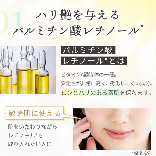 敏感肌でも使いやすく、肌をいたわりながらレチノールを取り入れることができます。