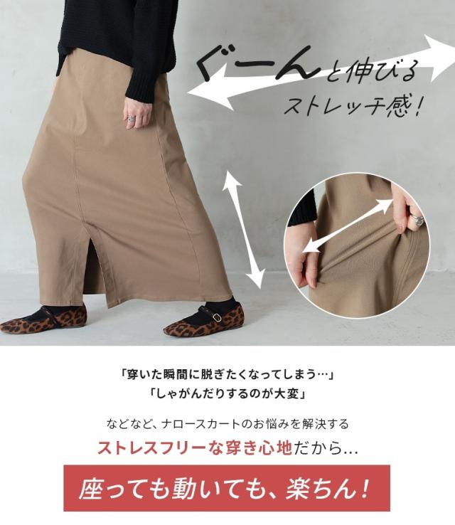 <冬新作>『ストレッチナロースカート』【メール便不可】【20】[ナロースカート ロング レディース ボトムス ストレッチ UVカット 吸水速乾 軽量 ウエストゴム ポケット 体型カバー 春 夏 秋 冬]