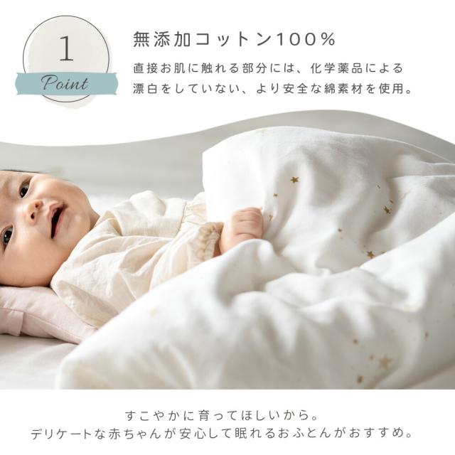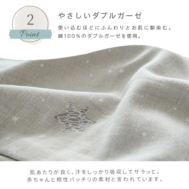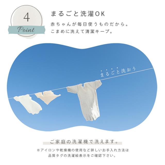 ・無添加コットン100% 直接お肌に触れる部分には、化学薬品による漂白をしていない、より安全な綿素材を使用。 ・やさしいダブルガーゼ使い込むほどにふんわりとお肌に馴染む。綿100%のダブルガーゼを使用。赤ちゃんと相性ばっちりの素材です。 ・安心で高品質な日本製生まれたばかりの赤ちゃんへ。安心して使えるクオリティーをお届け。日本国内の協力工場にて大切に作られています。 ・まるごと洗濯OK赤ちゃんが毎日使うものだから。こまめに洗えて清潔キープ。ご家庭の洗濯機で洗えます。 ・らくらくファスナー仕様開け閉めが簡単で使いやすい、便利なファスナー設計。 ・4ヶ所スナップボタン付きずれ防止のためのスナップボタンが4ヶ所に付いており、しっかり固定できます。 |