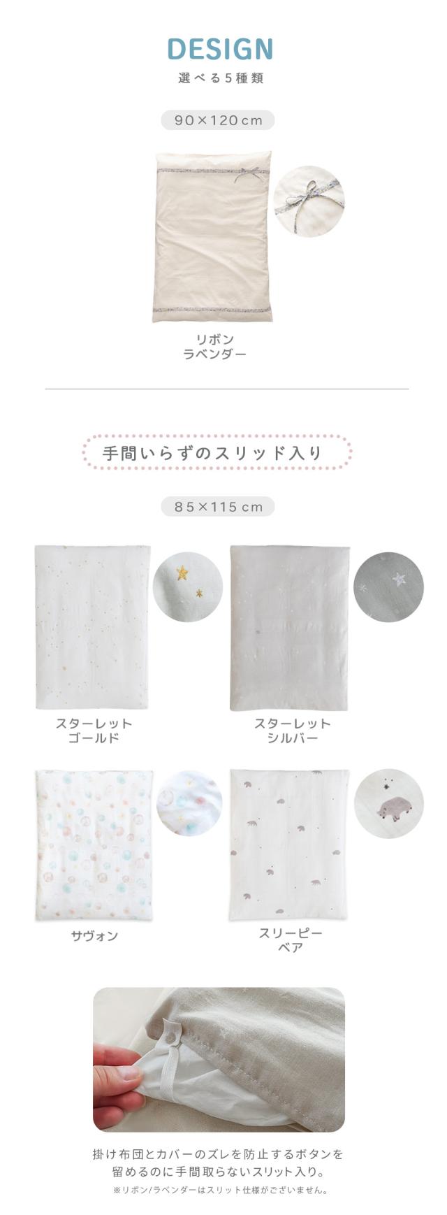 ベビー 掛け布団カバー レギュラーサイズ 90×120cm(リボン/ラベンダーのみ) 85×115cm 綿100% ファスナー 日本製 ガーゼ ダブルガーゼ 2重ガーゼ 無添加 掛布団カバー 掛カバー 掛けカバー 布団カバー ベビー用品 赤ちゃん ふとん サンデシカ sandesica