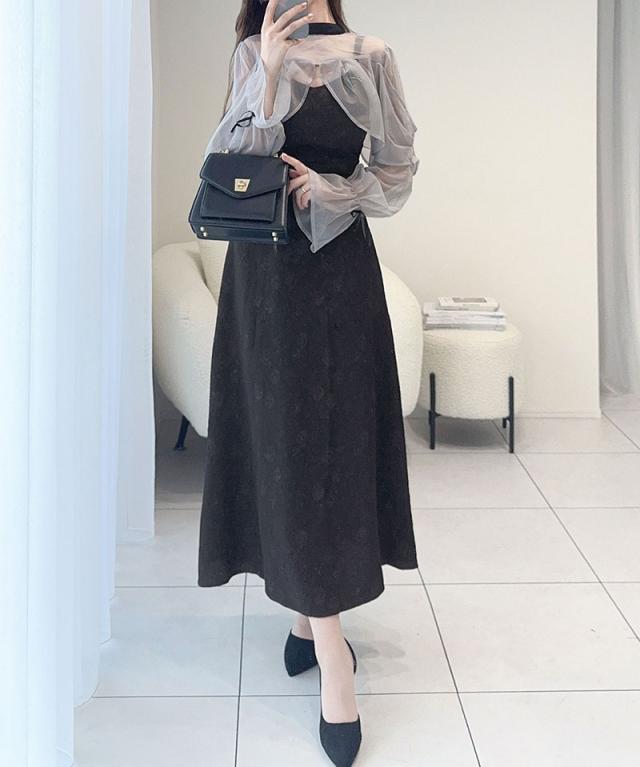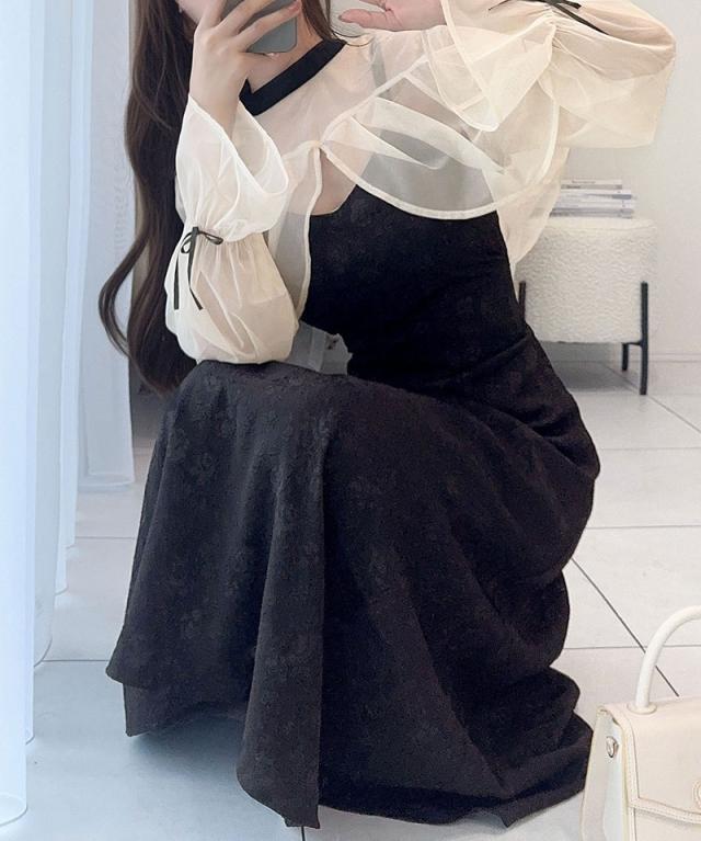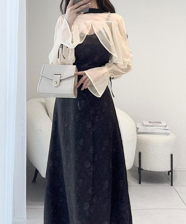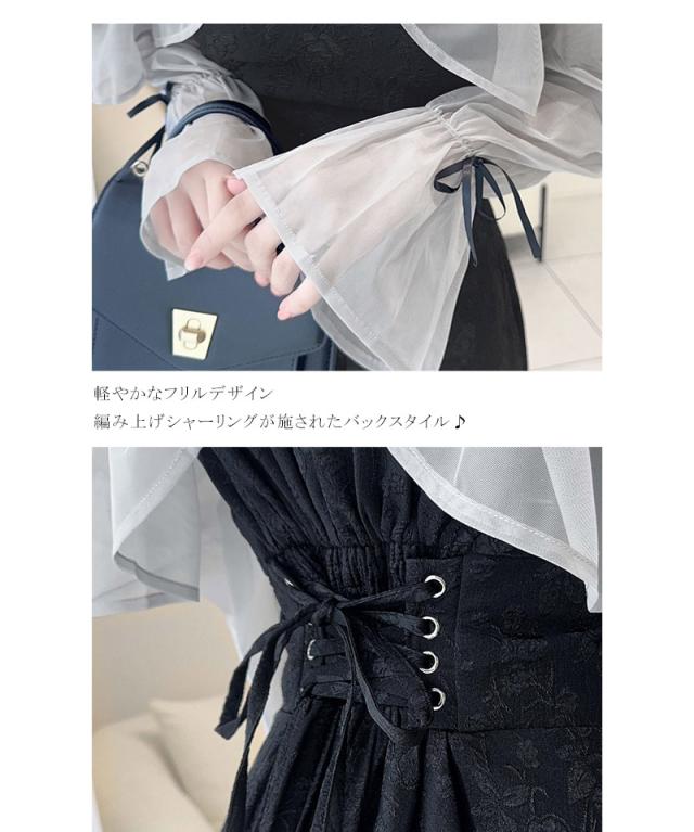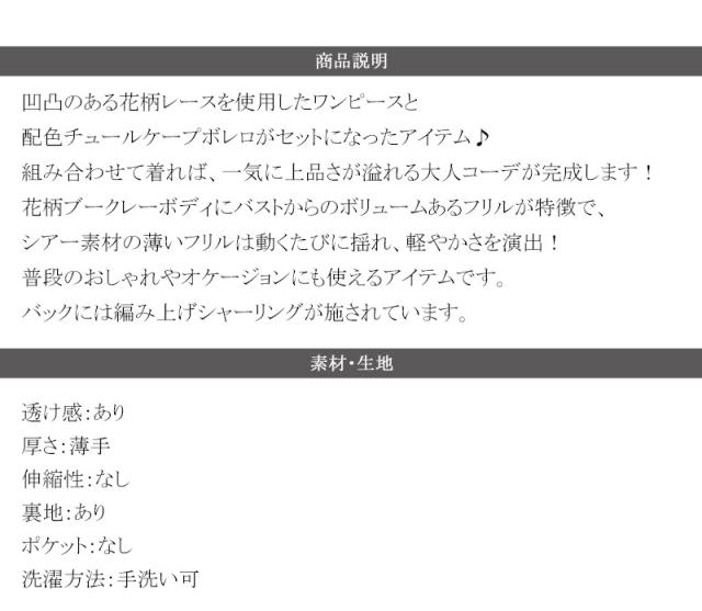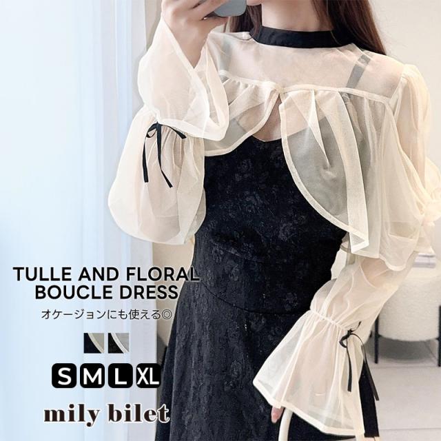 クラシカルエルフ冬新作 mily bilet ワンピース レディース チュール 花柄 ボレロ ケープ 華やか 上品 ブークレー 普段使い フリルデザイン 編み上げ シャーリング シアー素材 花エンボス オケージョン おしゃれ ウエストシェイプ 大きいサイズ 2025aw mi1139096