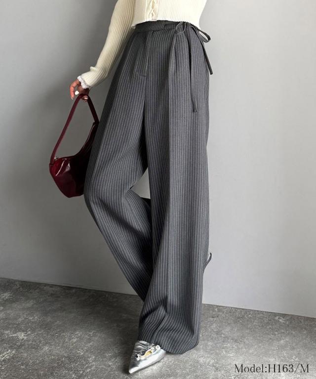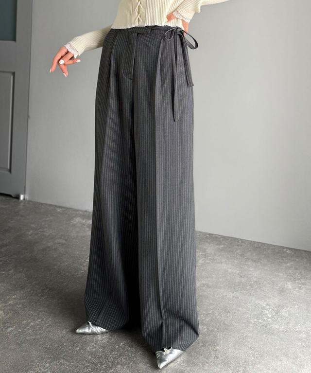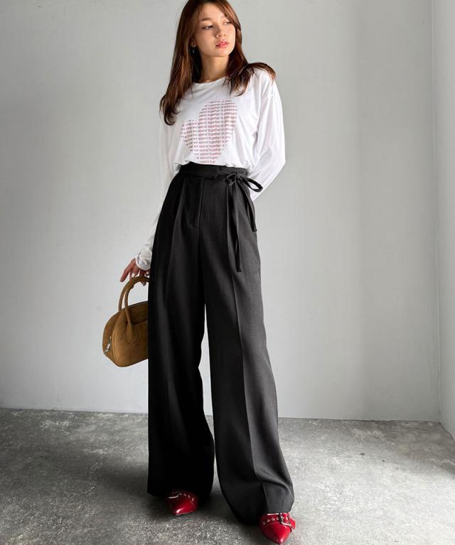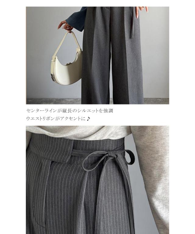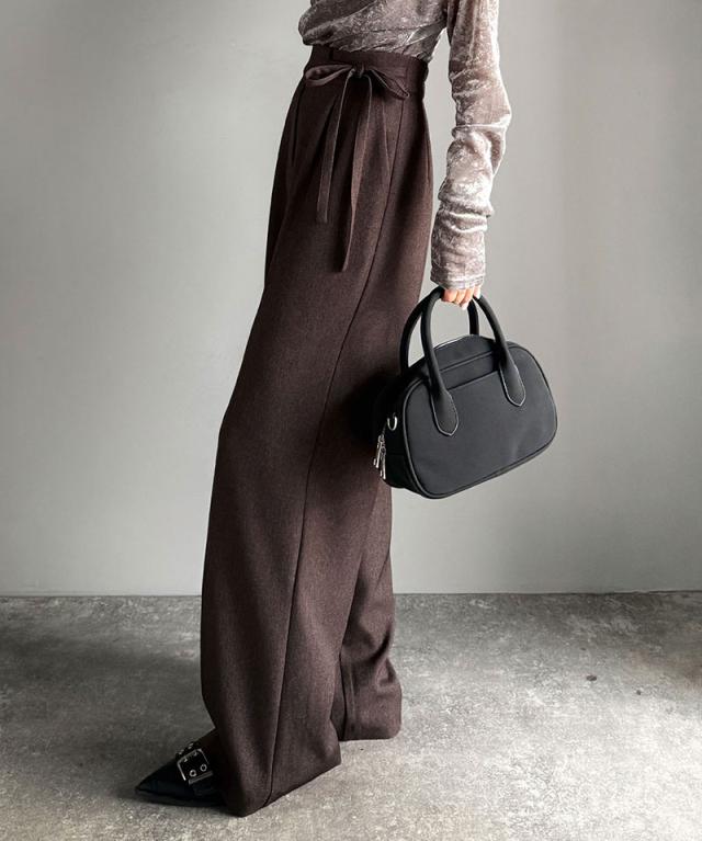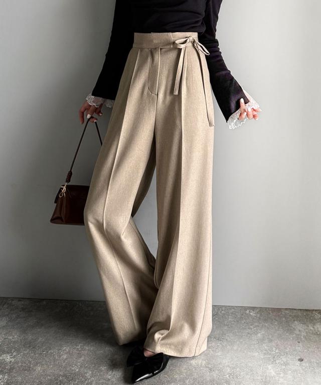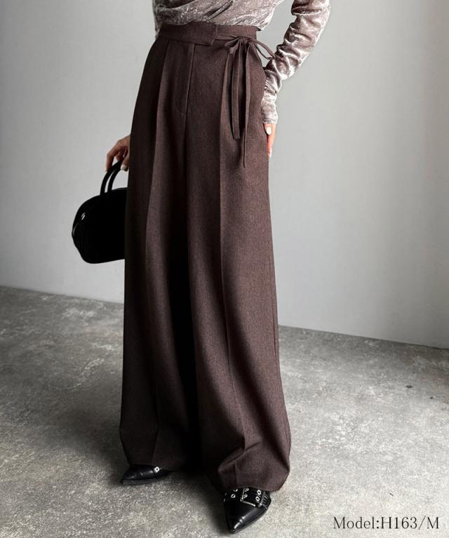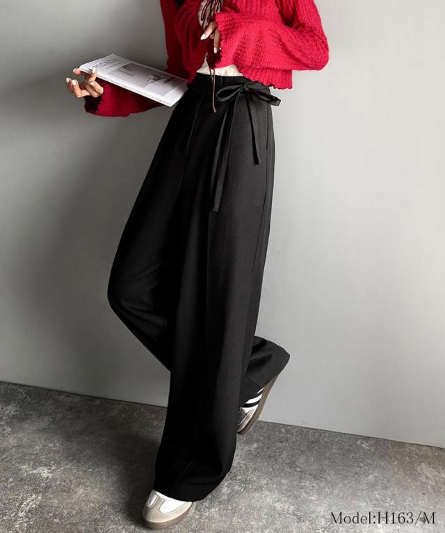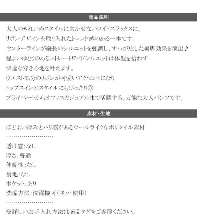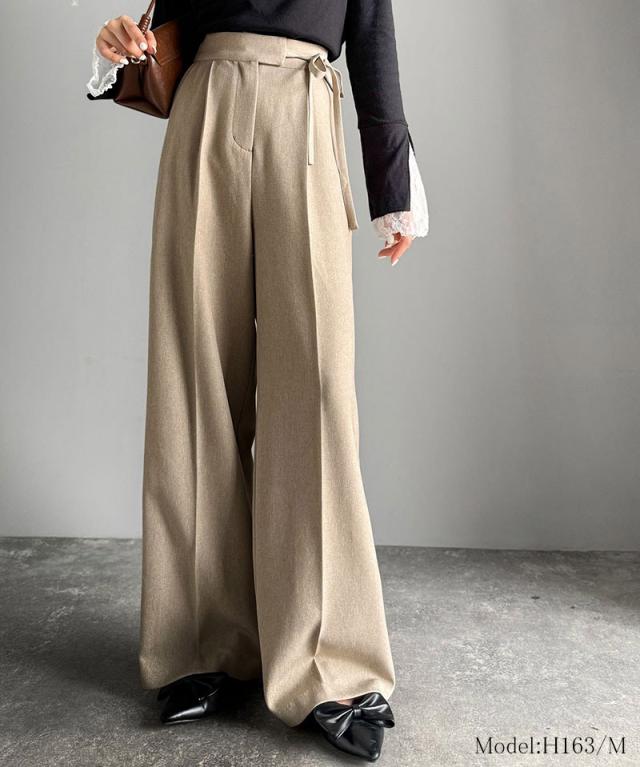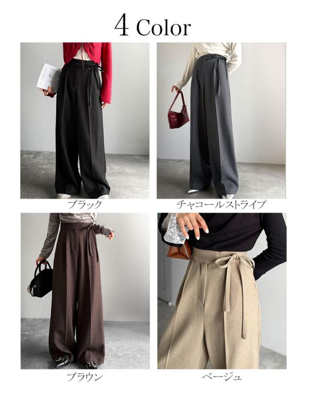 クラシカルエルフ冬新作 mily bilet ボトムス パンツ レディース リボン ワイドスラックス ワイドパンツ キレイ目 ガーリー センターライン ウエストリボン ワイドシルエット 縦長ライン 脚長効果 体型カバー カジュアル 大きいサイズ 2025aw mi1329033