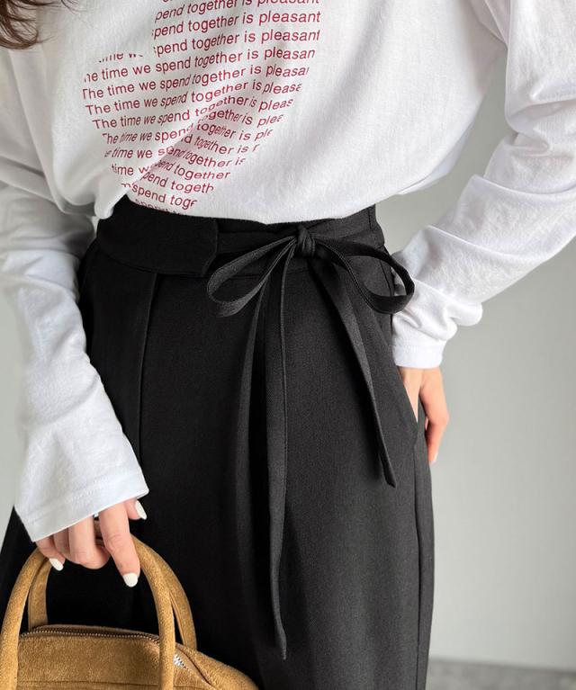 ウエスト部分のリボンが可愛いアクセントになり、トップスインのスタイルにもぴったり◎
