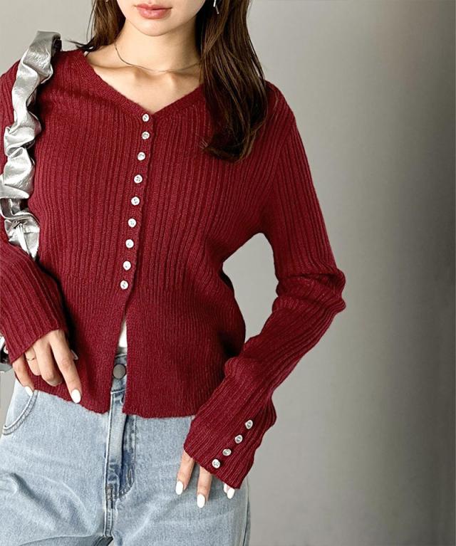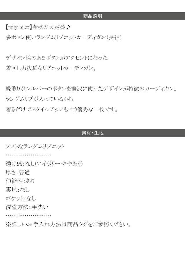 クラシカルエルフ冬新作 mily bilet トップス カーディガン レディース 多 ボタン 使い ランダム リブニット カーデ 着回し 羽織り ロングシーズン 長袖 大きいサイズ 2025aw mi1329047