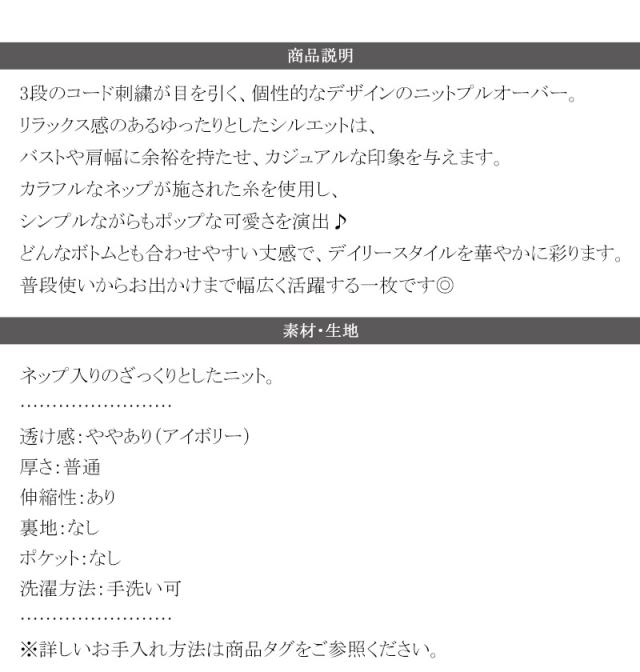3段のコード刺繍が目を引く、個性的なデザインのニットプルオーバー。