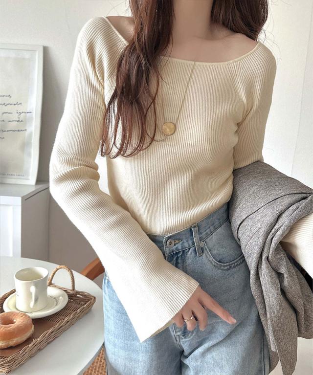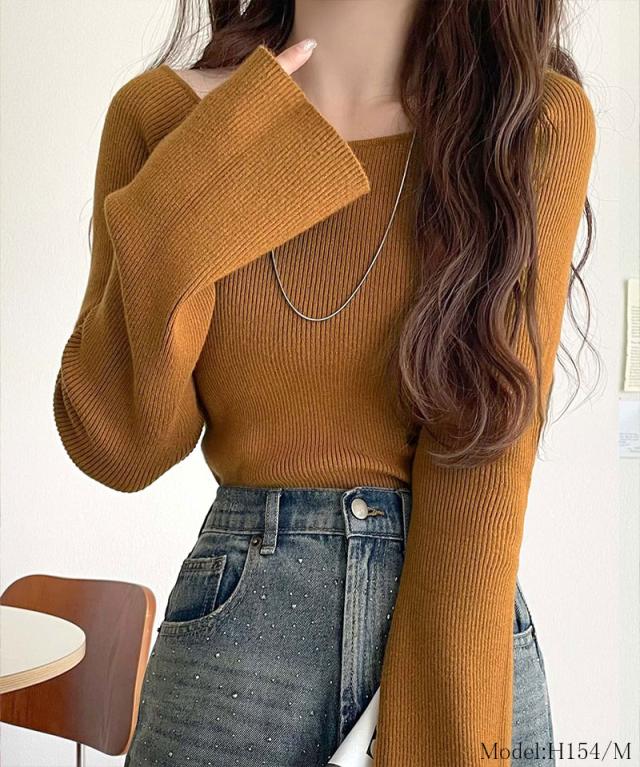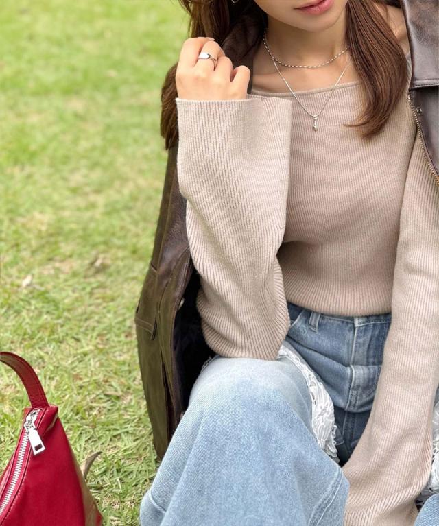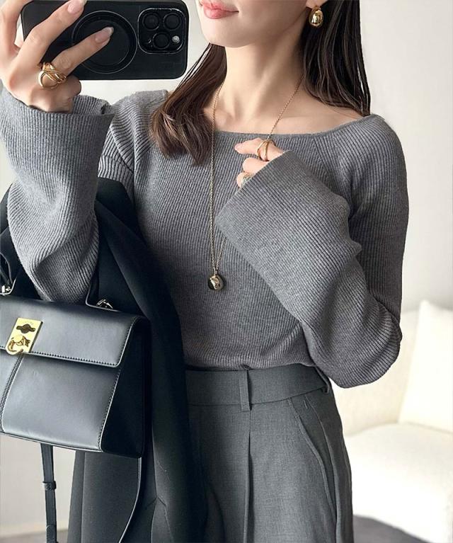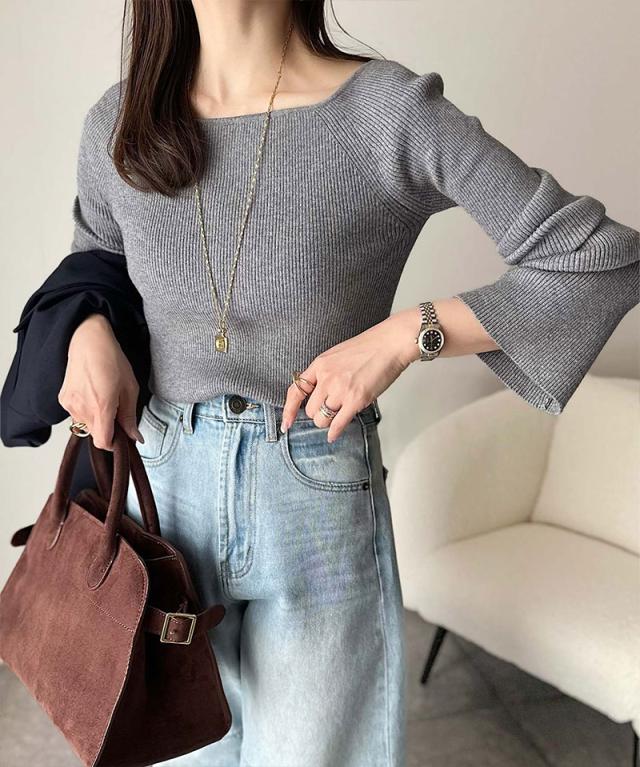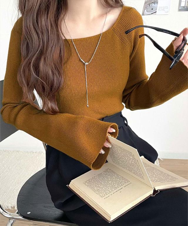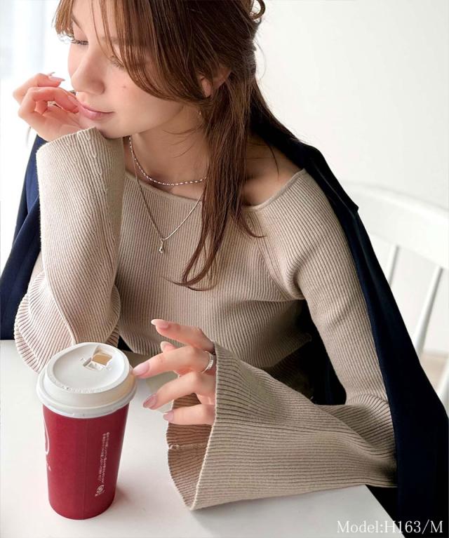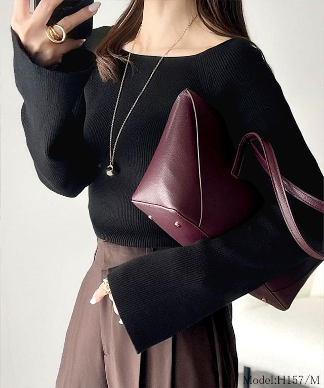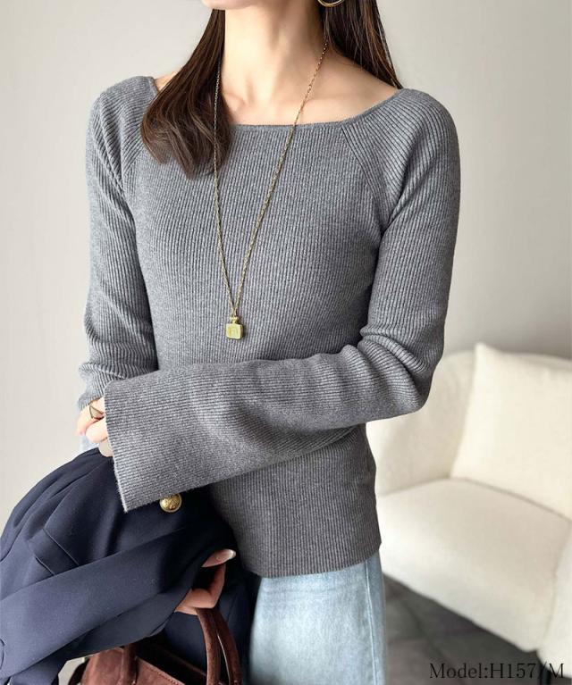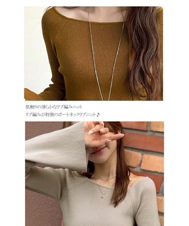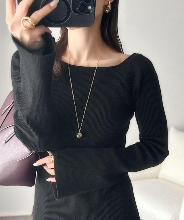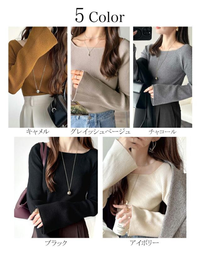 クラシカルエルフ冬新作 トップス ニット レディース デコルテ 美人 ボートネック リブニット 長袖 フレア スリーブ 着回し オフィス デイリー 大きいサイズ 2025aw ce1260447