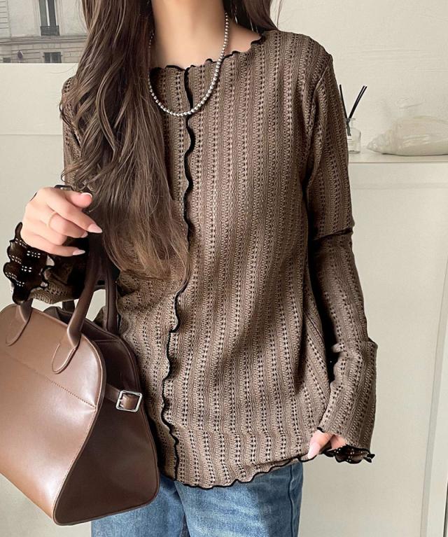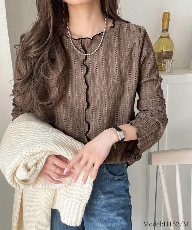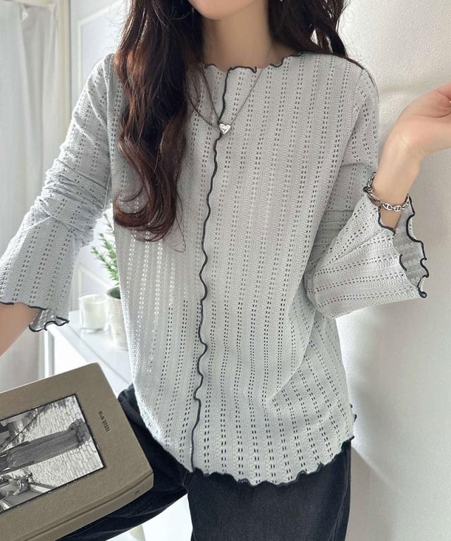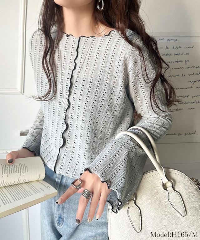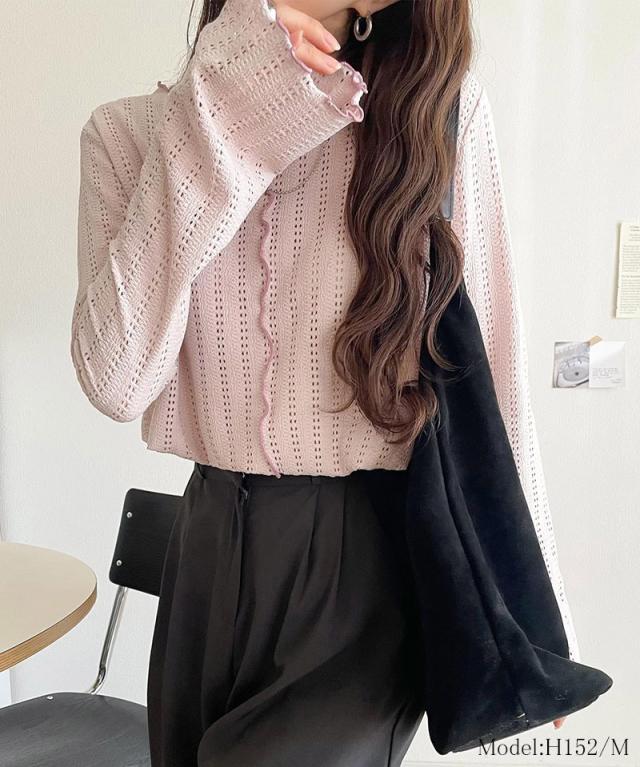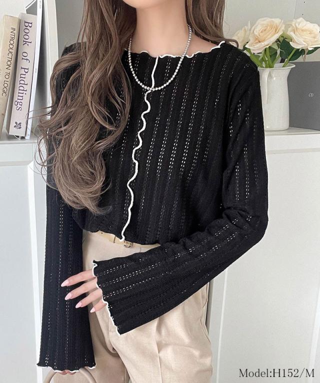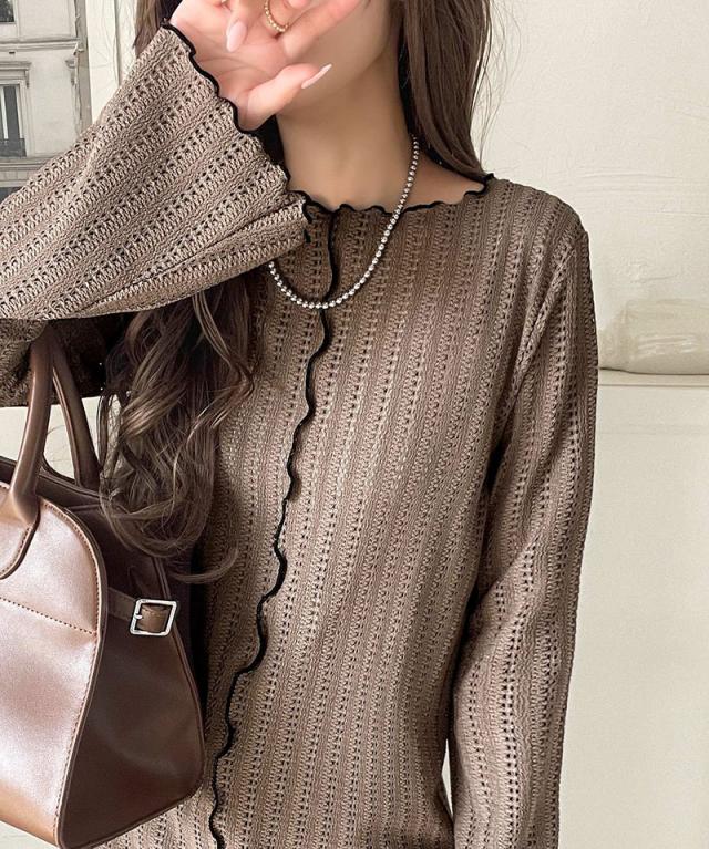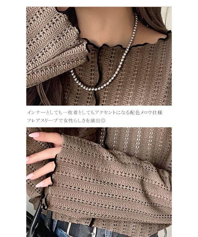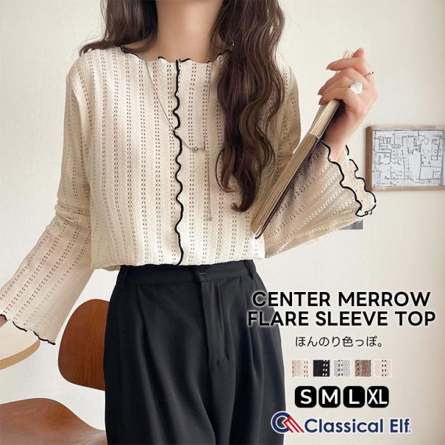 クラシカルエルフ冬新作 トップス カットソー レディース フレアスリーブ 長袖 メロウ 大人可愛い ほどよい透け感 透かし編み 華奢見え ステッチ シンプル フェミニン ライトカラー 大人っぽい ダークカラー 大きいサイズ 2025aw ce1010485