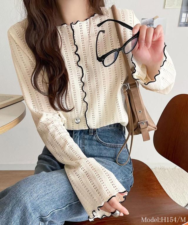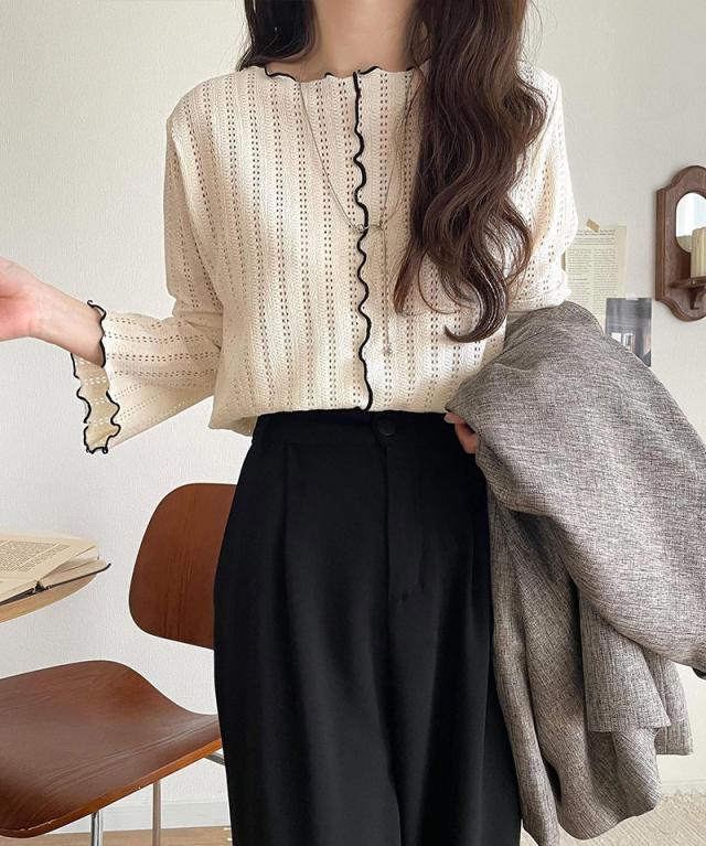 メロウフリルのネックと袖コンシャスデザインが存在感のある1枚に。
