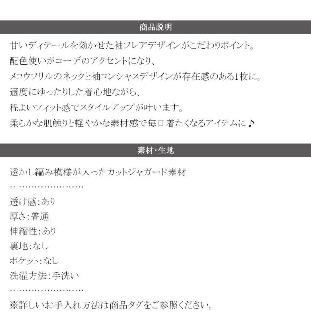 甘いディテールを効かせた袖フレアデザインがこだわりポイント。