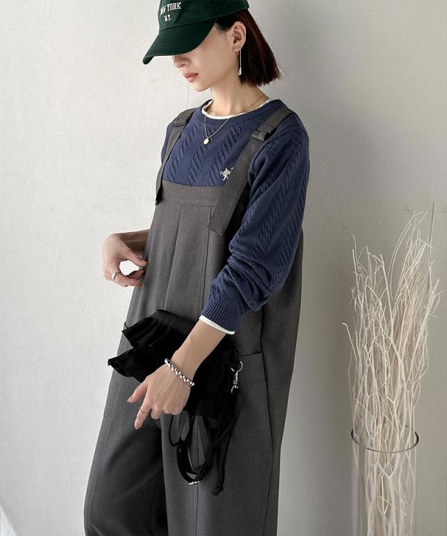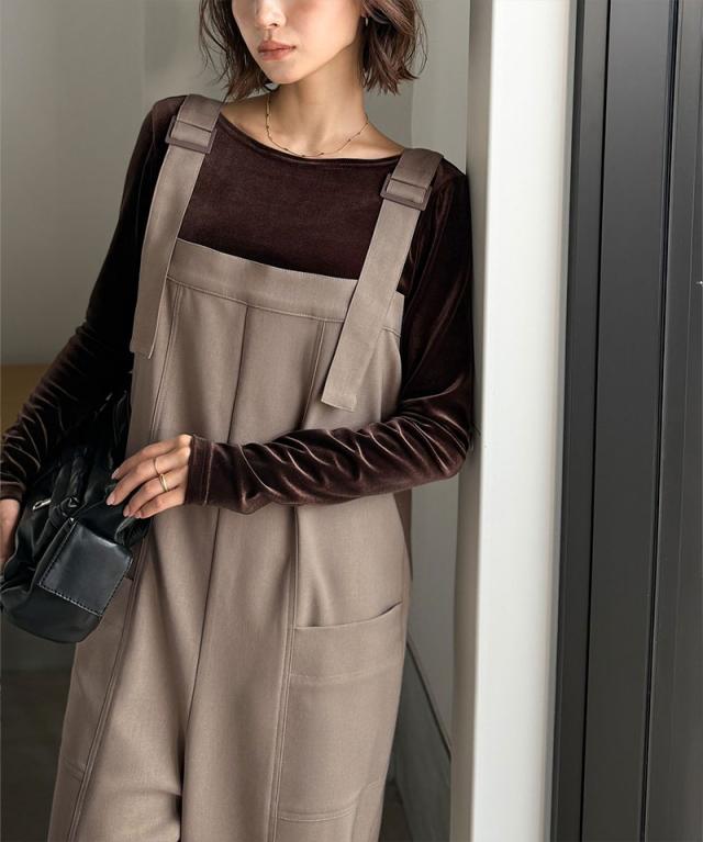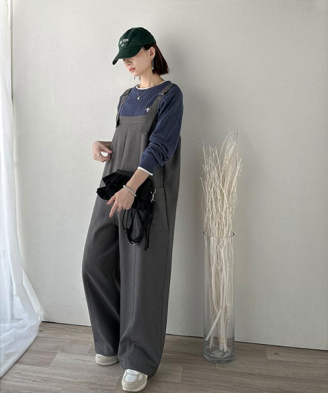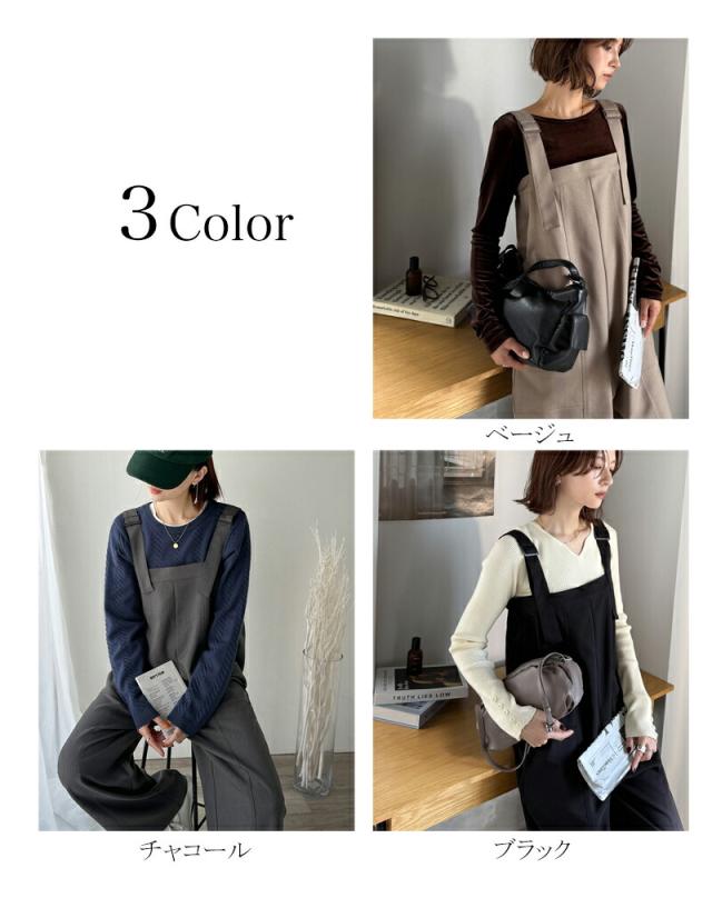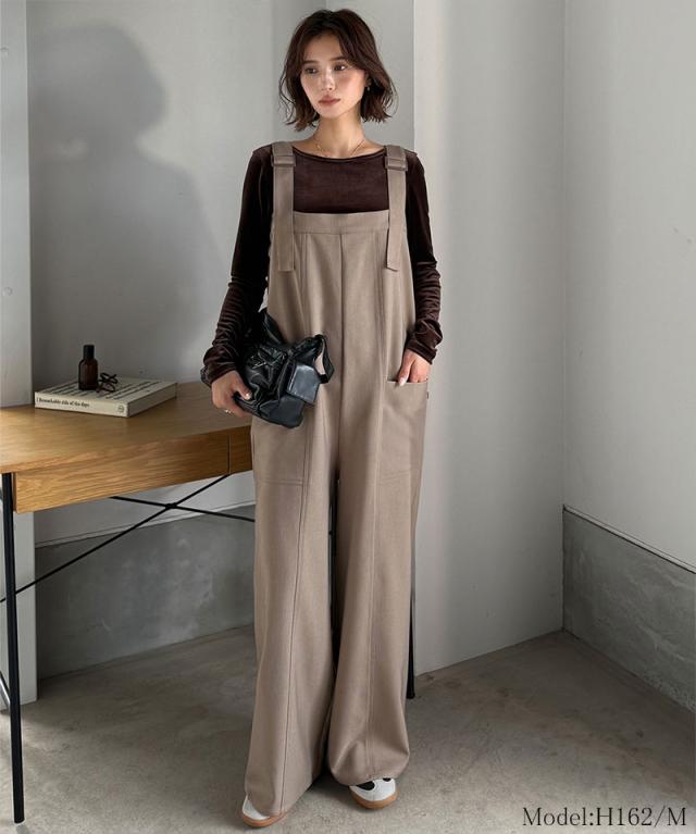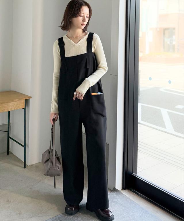 クラシカルエルフ冬新作 オールインワン サロペット レディース 高見え サイド ポケット デザイン ハイウエスト サロペ レイヤードコーデ オールシーズン 大きいサイズ 2025aw ce1010493