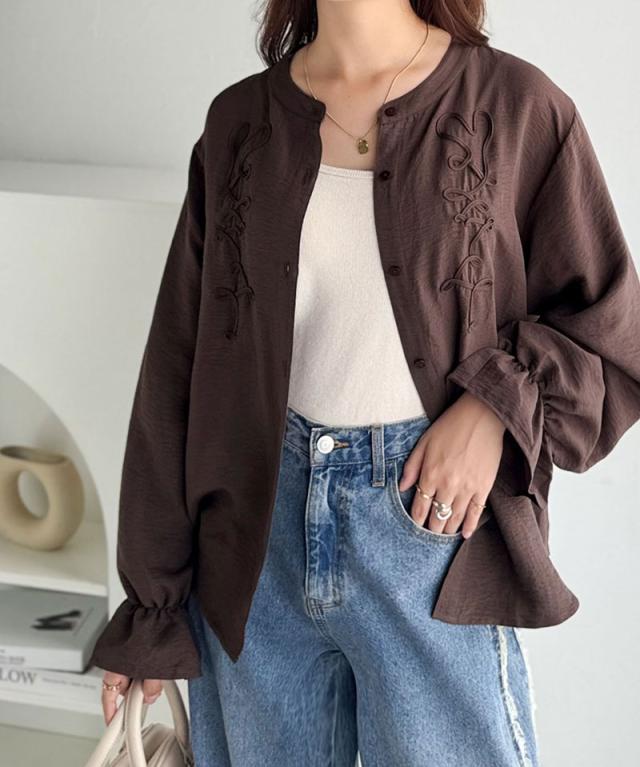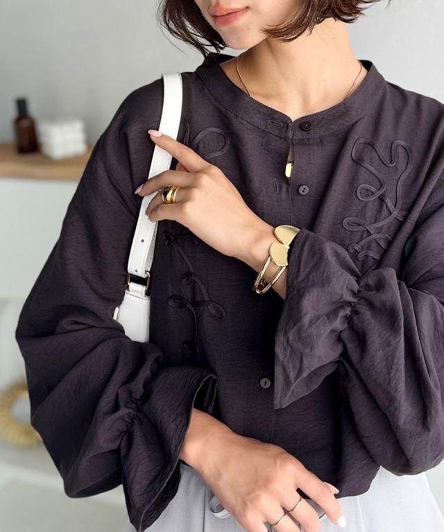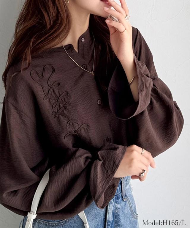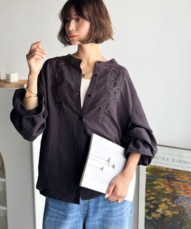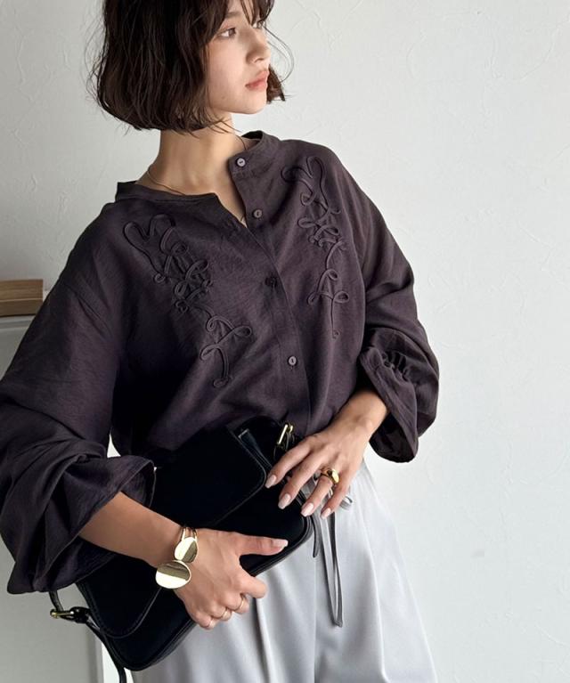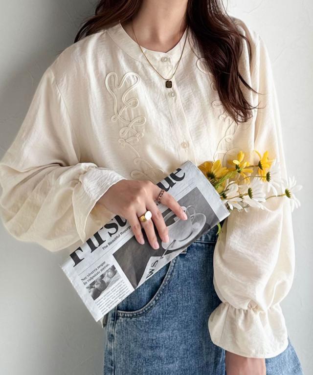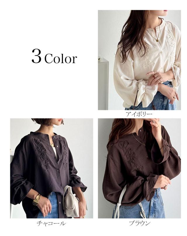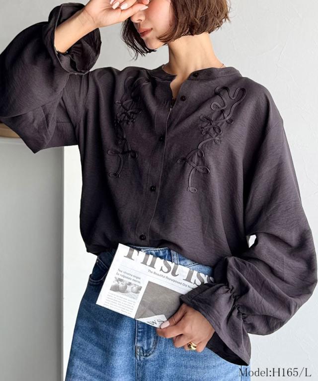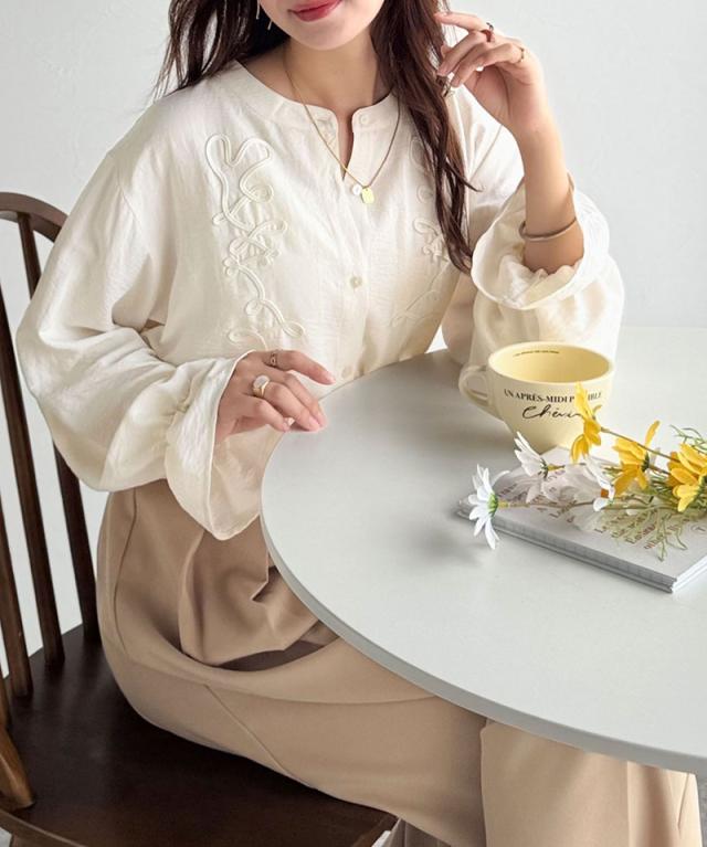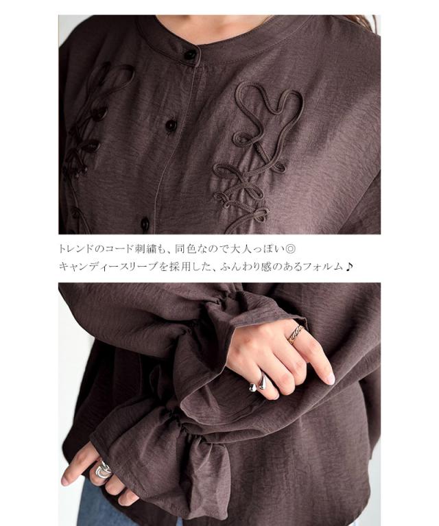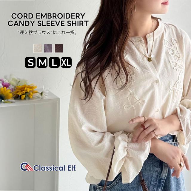 クラシカルエルフ冬新作 トップス ブラウス レディース コード刺繍 キャンディスリーブ シャツ 長袖 袖ぽわん 大人かわいい 上品デザイン 立体感 華やか ふんわり 軽量素材 ゆったり ゆとり カジュアル きれいめ 大きいサイズ 2025aw ce1010497