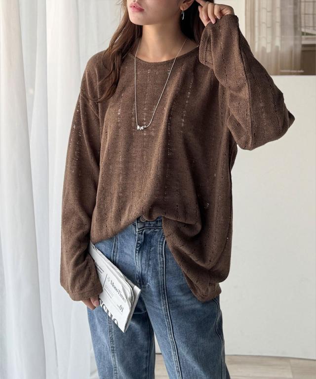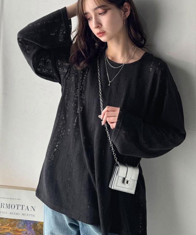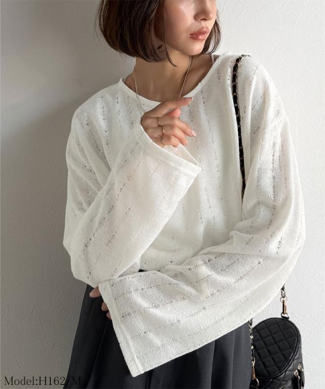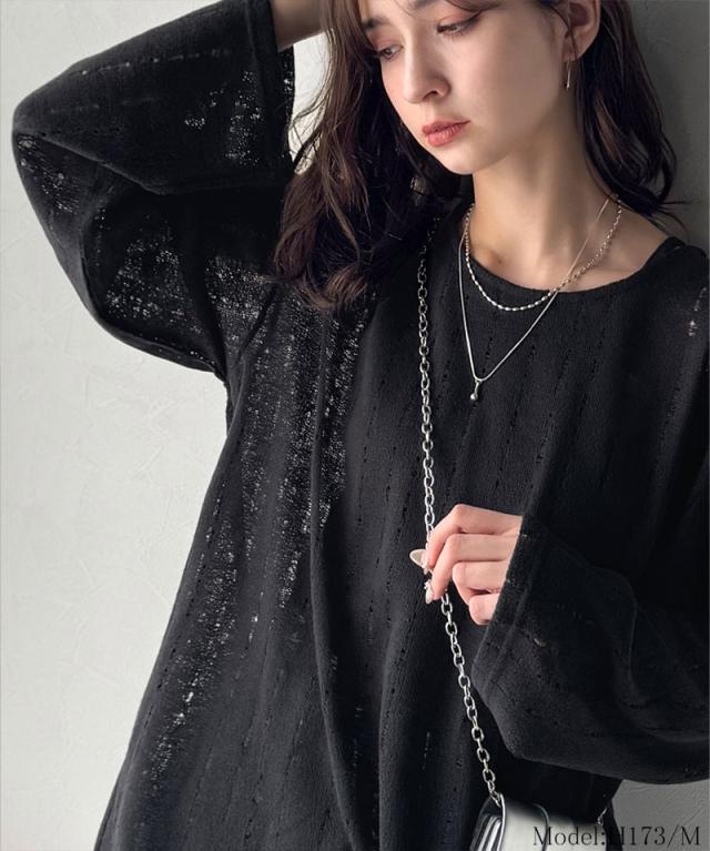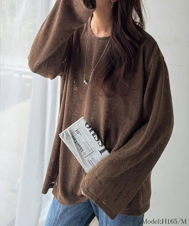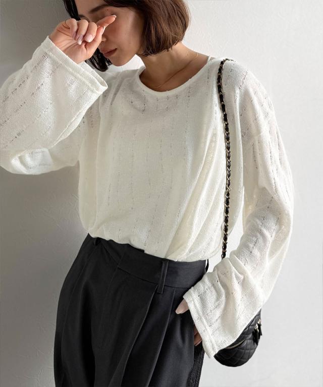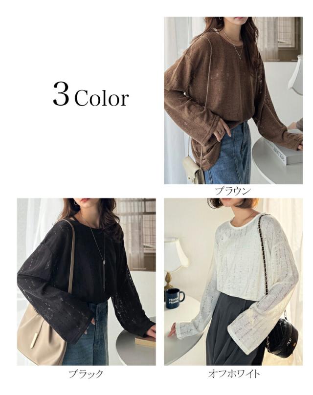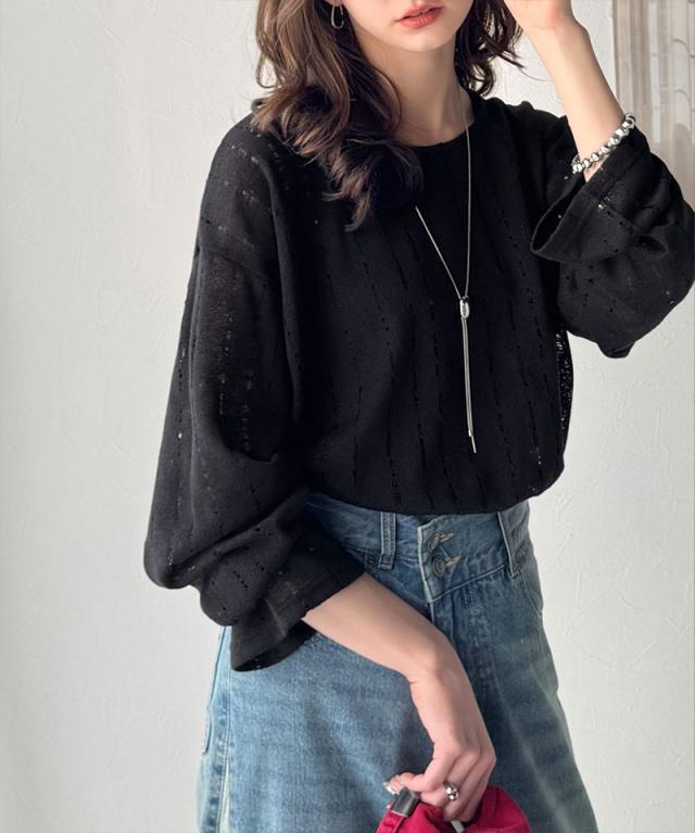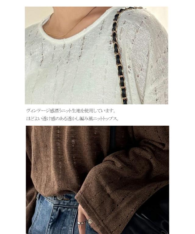 クラシカルエルフ冬新作 トップス Tシャツ レディース 透かし 編み プルオーバー 長袖 ロングシーズン 着回し デイリー オフィス ボリューム 袖 透け感 ゆるっと オーバーサイズ 大きいサイズ 2025aw ce1010504