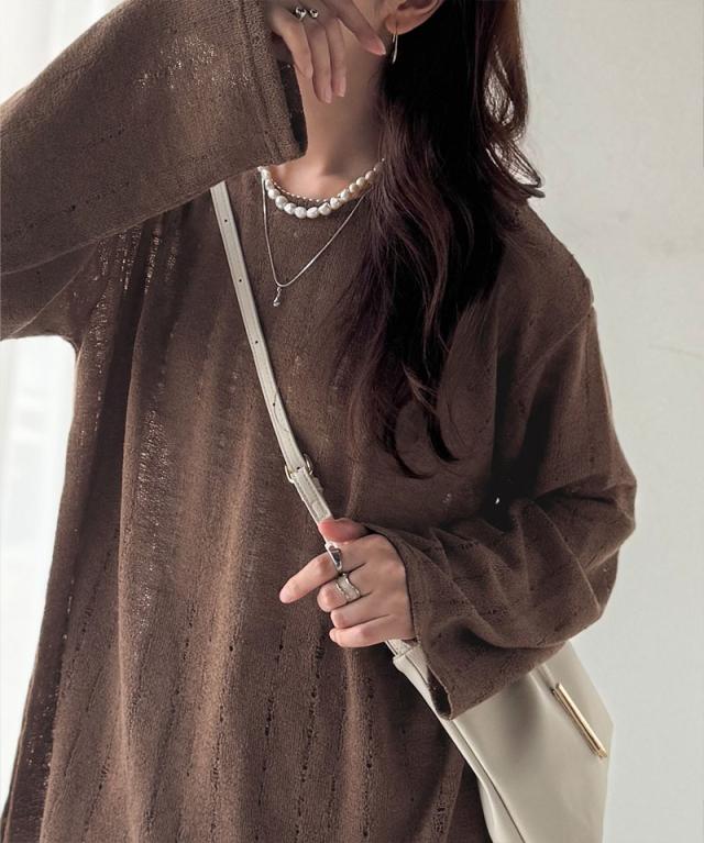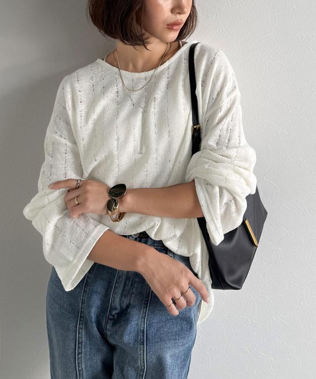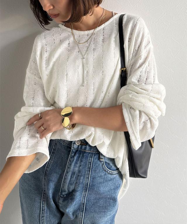 軽やかな編み地が、シンプルながらも奥行きのあるスタイルを演出してくれます。