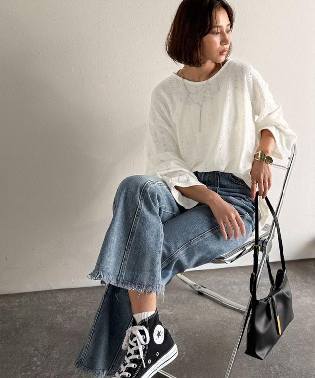 カジュアルなデニム合わせはもちろん、スラックスやスカートにインしてもバランス良くまとまります。