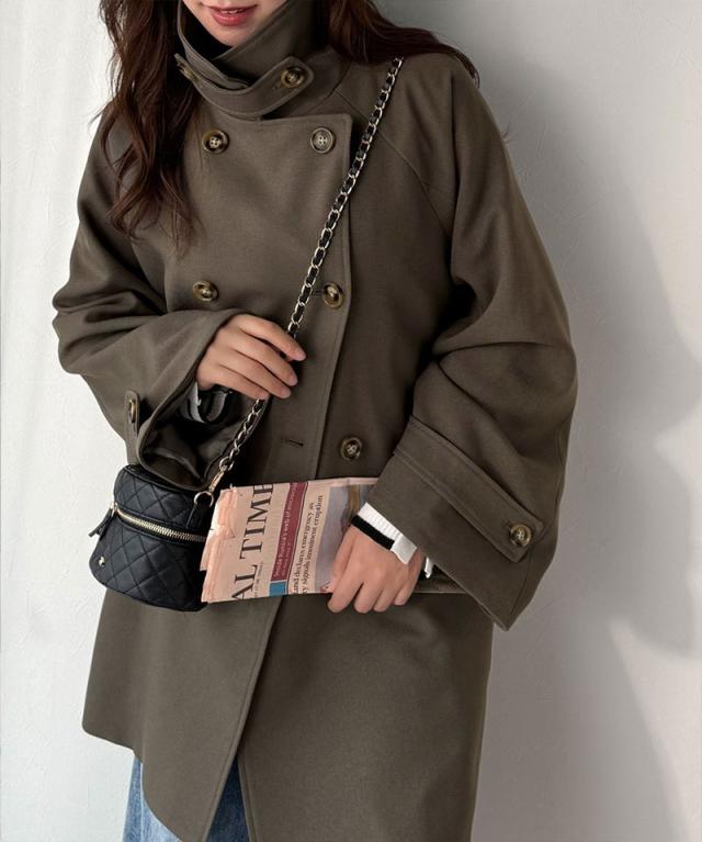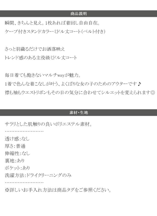 クラシカルエルフ冬新作 トップス アウター レディース ケープ 付き スタンド カラー ミドル丈 マルチway コート ベルト付き 大きいサイズ 2025aw ce1265021