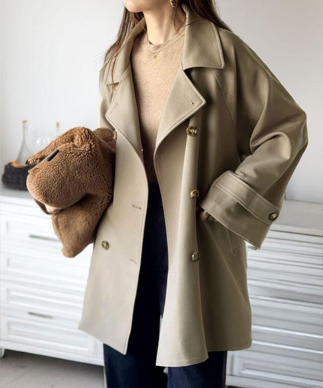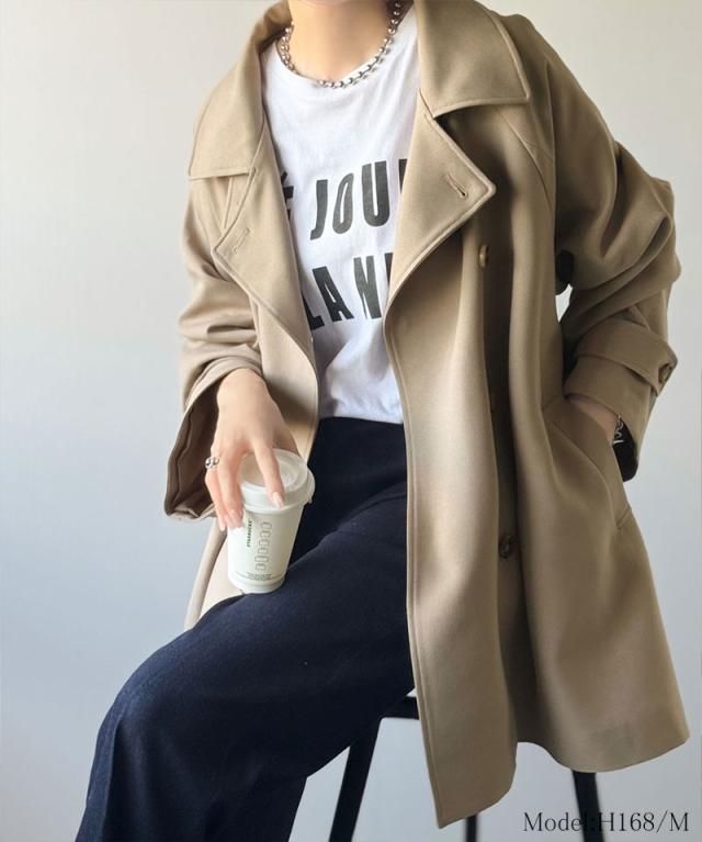 - 普段Lサイズを着るのですが、Lだと布が嵩張って体型がより大きく見えてしまいました。コート自体は良い商品です。サイズはSでも良かったかもしれません。(身長160、普通体型)