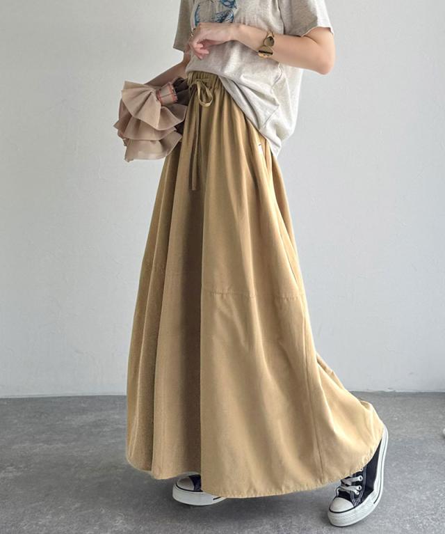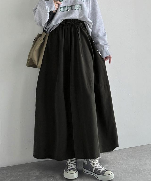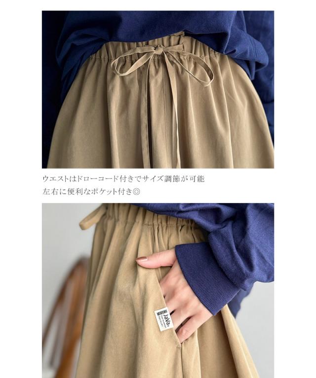 クラシカルエルフ冬新作 java ジャバコラボ ボトムス スカート レディース ロングスカート ピーチ起毛素材 コクーンシルエット ふんわり 可愛い ウエスト総ゴム ストレスフリー ドロスト紐付き 普段使い お出かけ ポケット 薄手 大きいサイズ 2025aw jv0940247