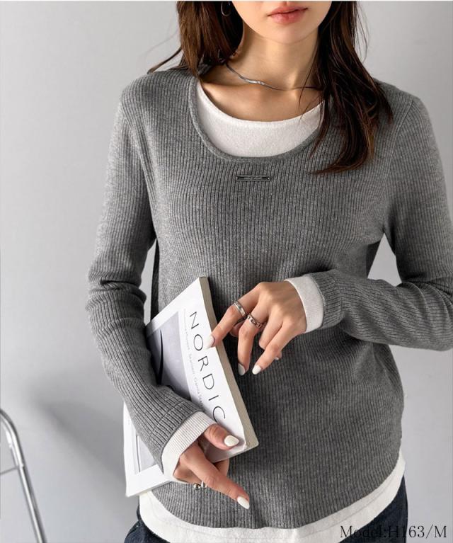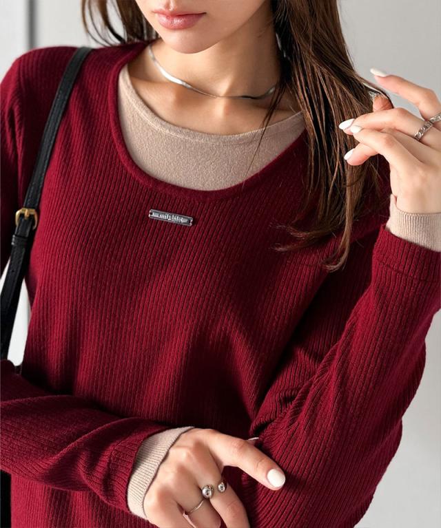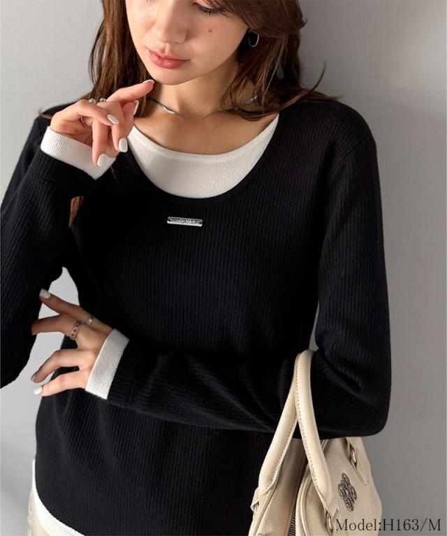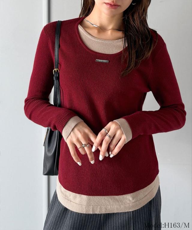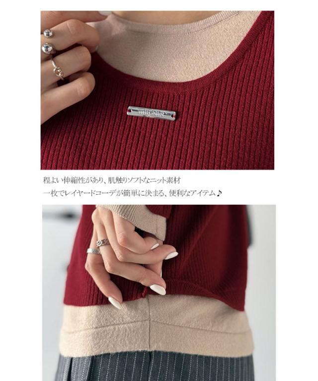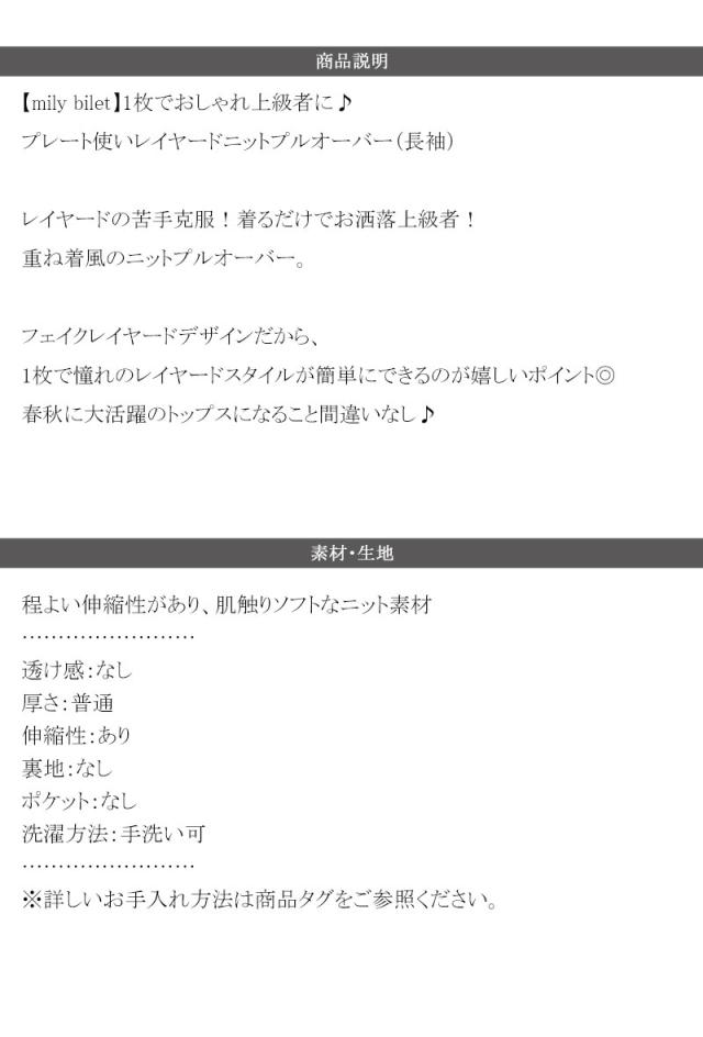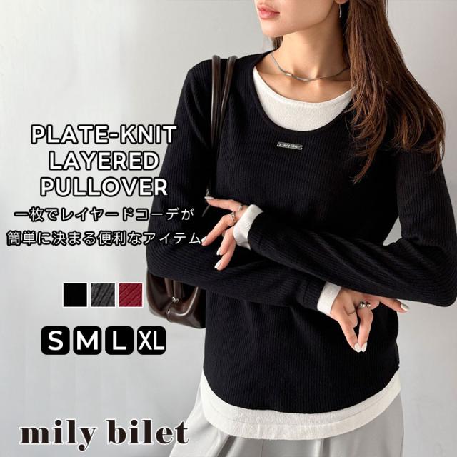 クラシカルエルフ冬新作 mily bilet トップス ニット レディース プレート 使い フェイク レイヤード デザイン ニットプルオーバー 長袖 大きいサイズ 2025aw mi1029136