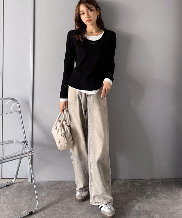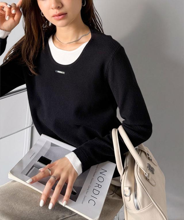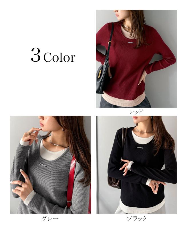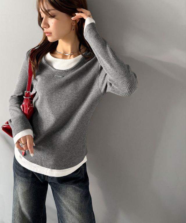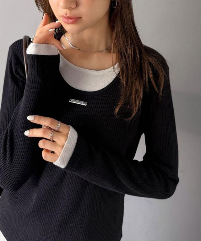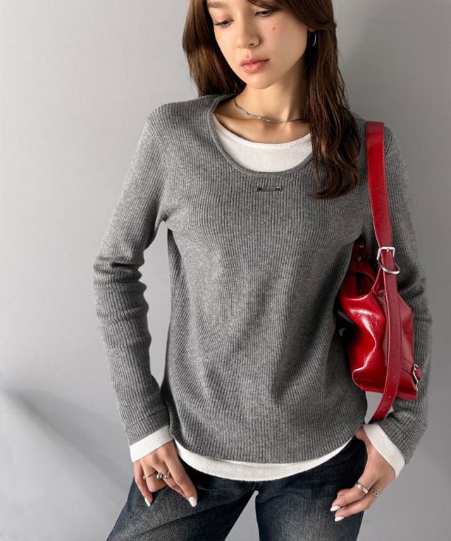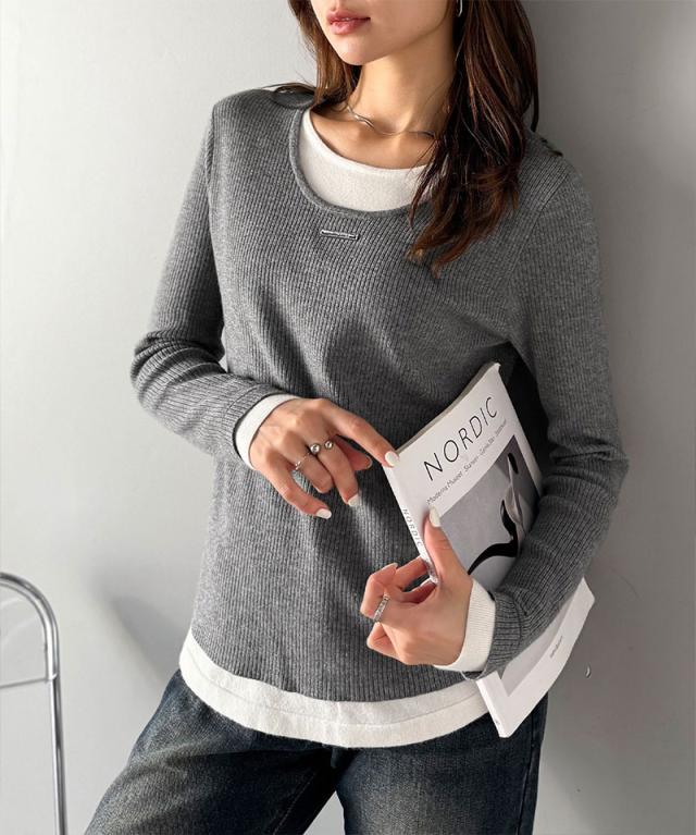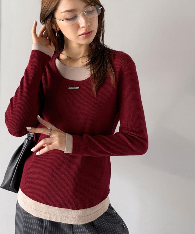 クラシカルエルフ冬新作 mily bilet トップス ニット レディース プレート 使い フェイク レイヤード デザイン ニットプルオーバー 長袖 大きいサイズ 2025aw mi1029136