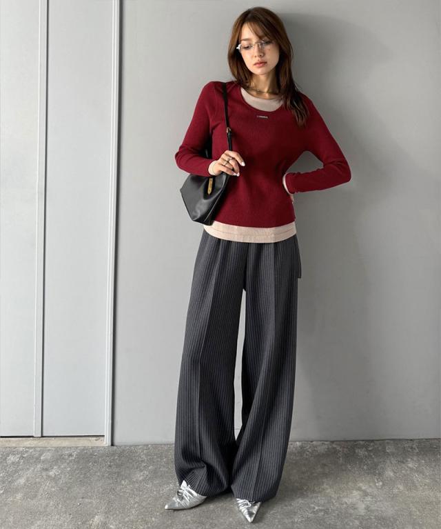 シンプルなボトムスと合わせてもおしゃれ見えするニットトップスです。