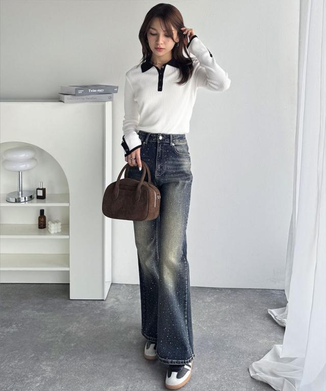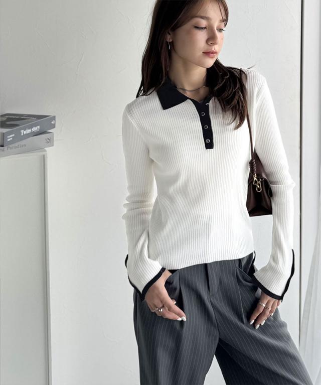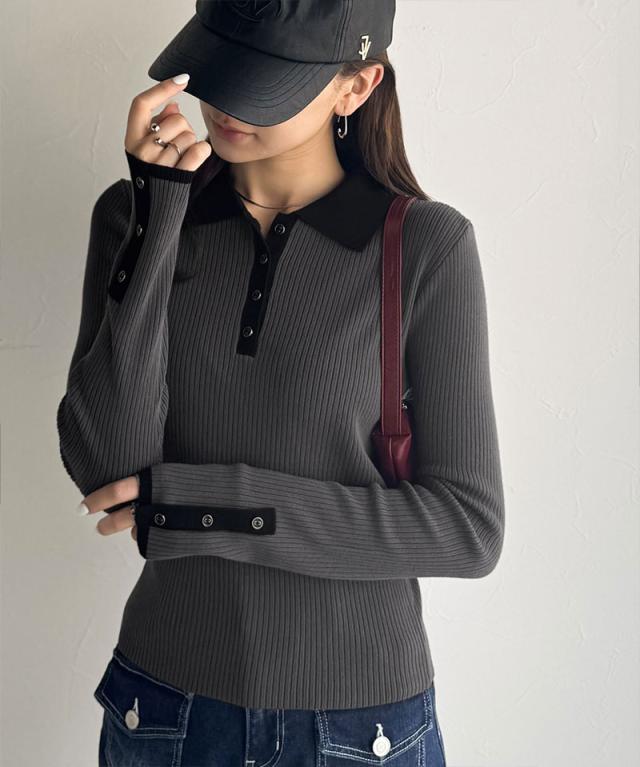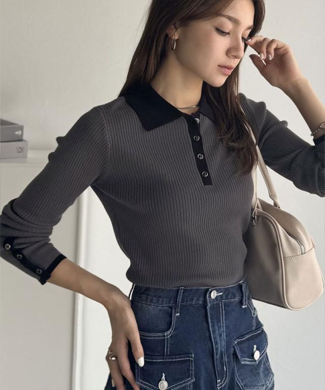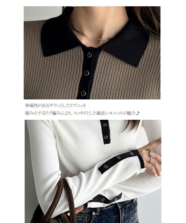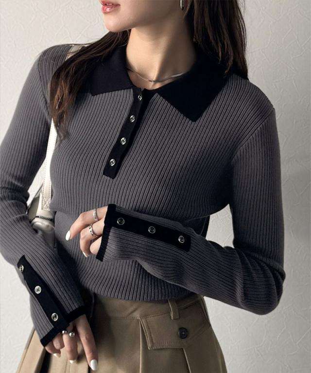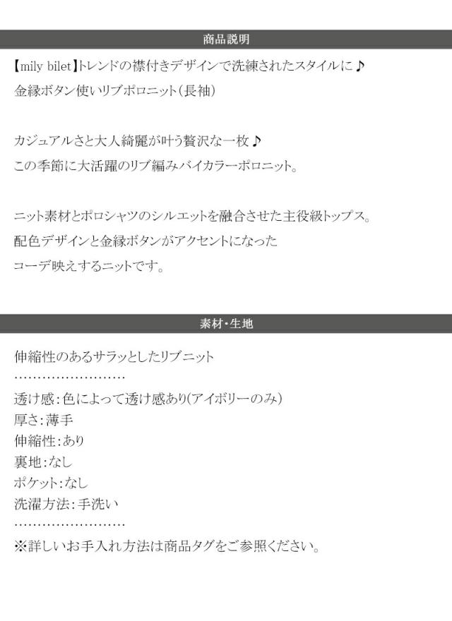 クラシカルエルフ冬新作 mily bilet トップス ニット レディース 襟付き デザイン 金縁 ボタン 使い リブ ポロニット 長袖 大きいサイズ 2025aw mi1029162