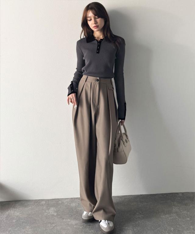 縦みえするリブ編みにより、スッキリとした縦長シルエットが魅力♪