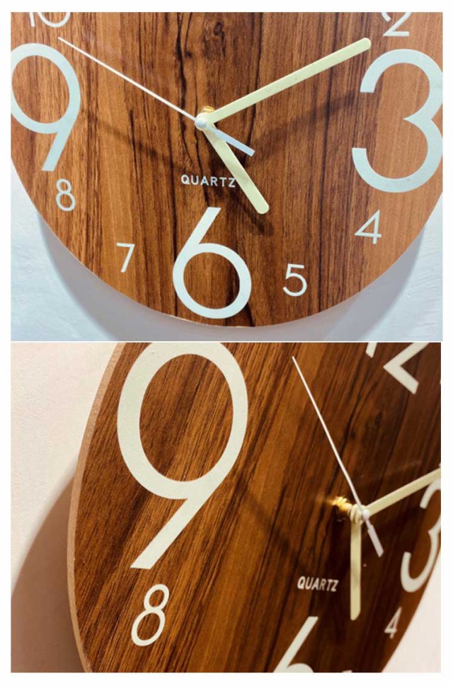 大きな白い数字は昼中に見るとは便利です、木目のデザインは完璧な飾りです。