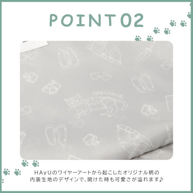 | ひとつひとつ、選びたい。 旅の準備が楽しくなるトラベルアクセサリー スーツケース内の整理に便利なトラベルアクセサリー。 ネコのワイヤーアートと旅をイメージしたモチーフから起こしたオリジナルのプリントは型ごとに違って集めたくなる可愛さ。 長毛ネコがプリントされたパッキングポーチMは、衣類の収納に便利です。 ・HAyUのワイヤーアートから起こしたオリジナル柄の内装生地。 ・ふた側には細かなものの収納に便利なファスナーポケット付き。 ・サイドハンドルつきで荷造り時のスーツケースへの出し入れをサポート。 ・パッキングポーチSと組み合わせるとHAyUパキラの34Lサイズに、Lサイズと組み合わせると48Lサイズにぴったり収納可能。 |