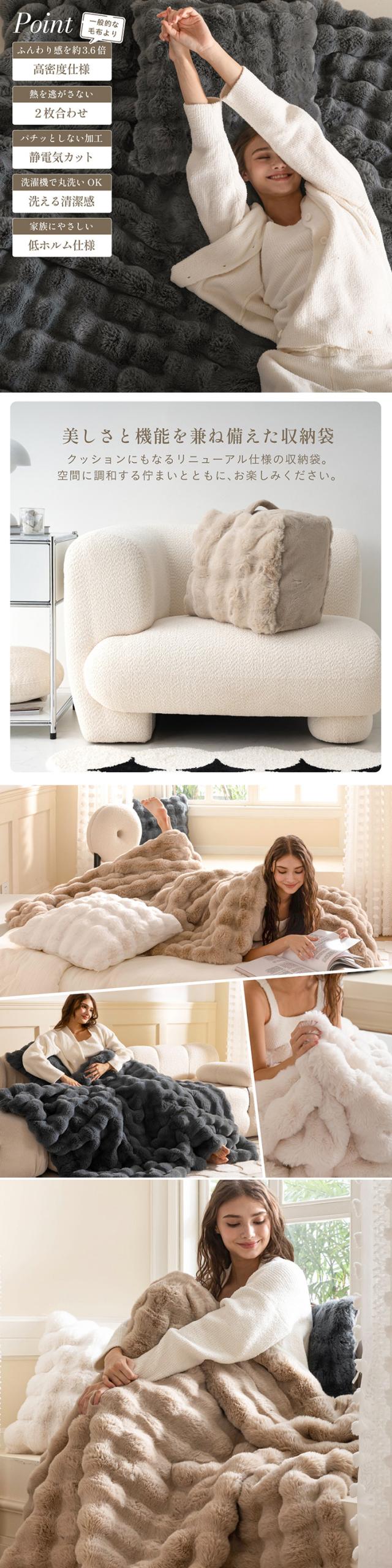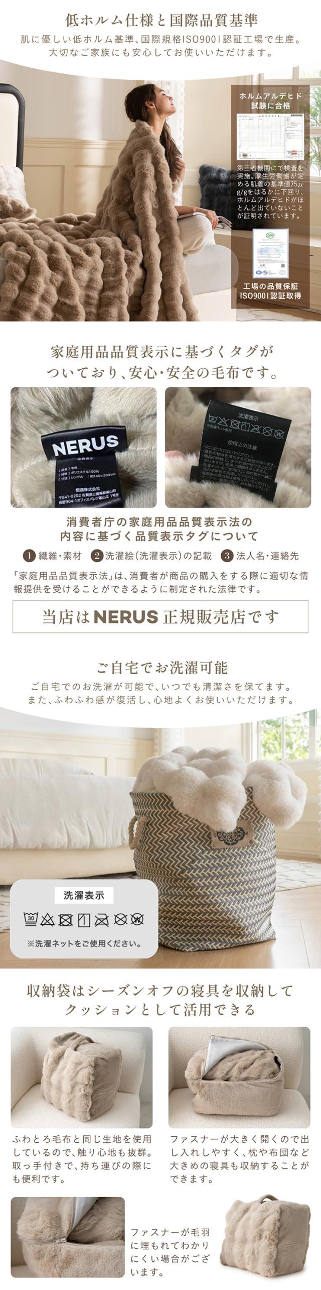 【NERUS 正規品 ネルス】寝具 毛布 シングル ふわとろ やわらか 暖かい Muir(ミューア) 3色対応 二枚合わせ 高密度フランネル 静電気防止 洗える 取っ手付き収納袋 クッション兼用 出し入れ簡単 北欧風 モダン おしゃれ