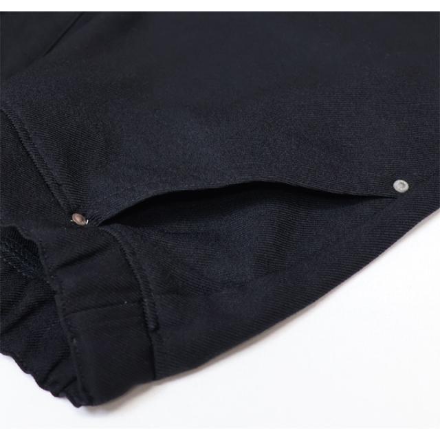 サイズが一つしかないのでサイズ選びが不要となっており、サイズレンジはXSからXXLまでカバーします。これ1本でワンマイルウエアとして、家族でも、体格の異なる友達ともシェアが可能です。その秘密はウエストの左右に配したBAND ADJUSTERにあります。簡単に片手でアジャストできます。スピンドル(紐)に比べ、幅広のベルト部は強い保持力を発揮します。