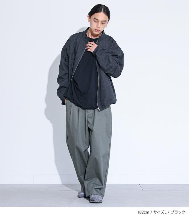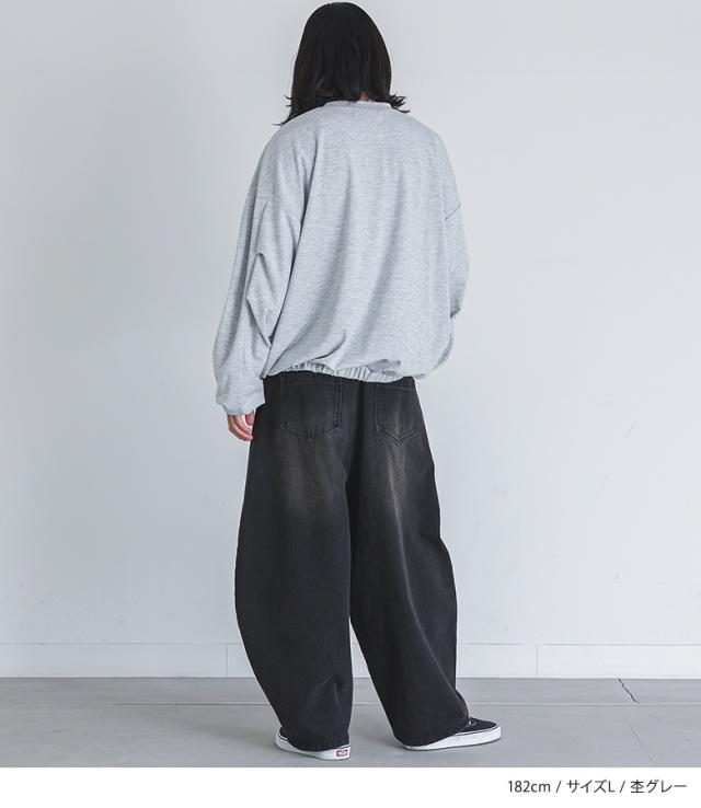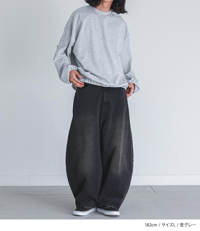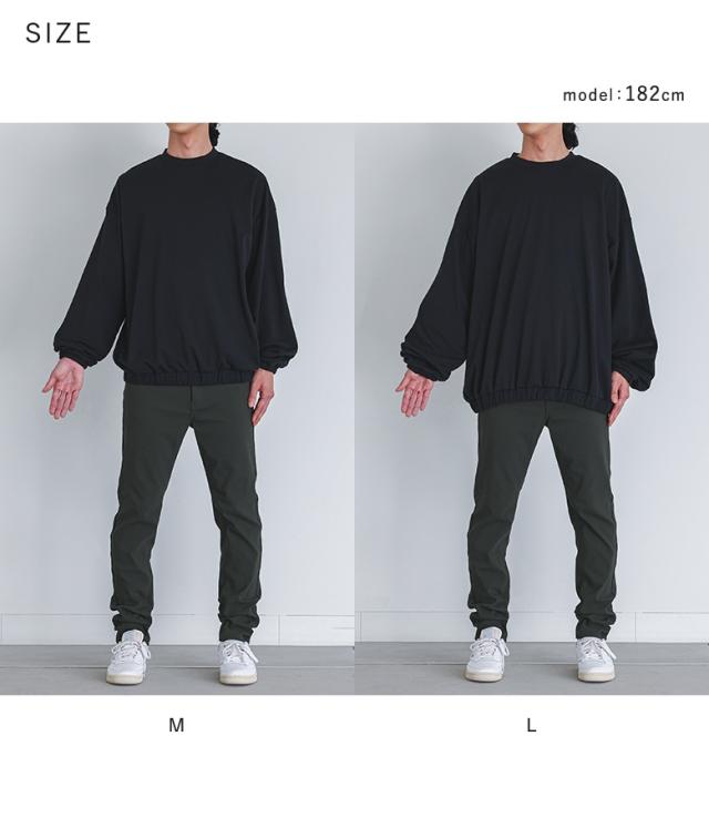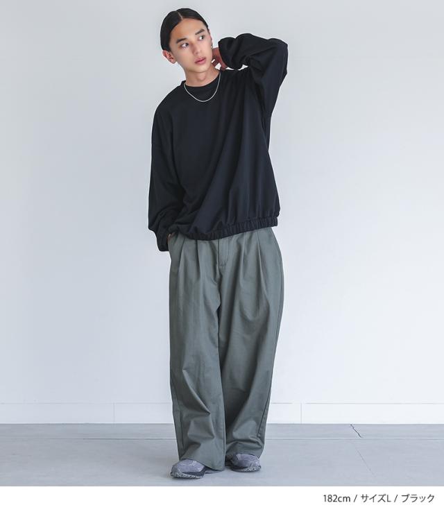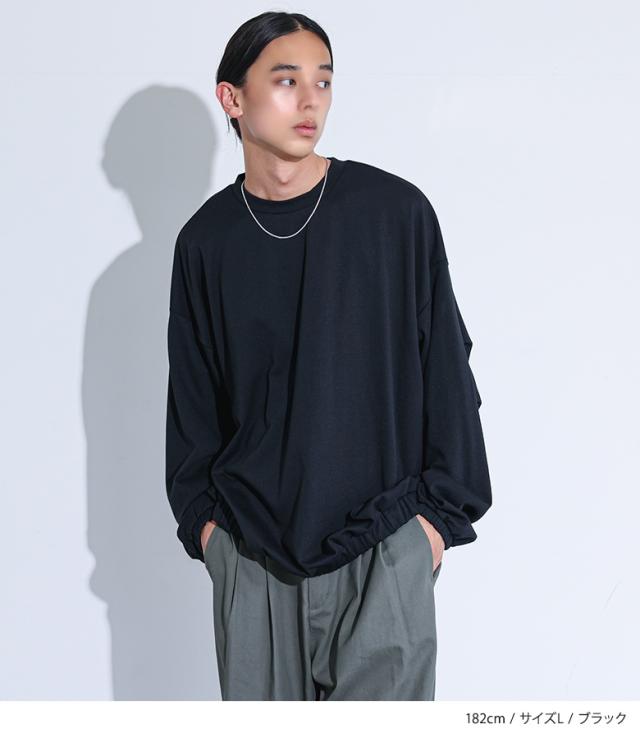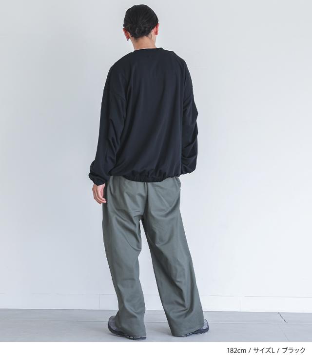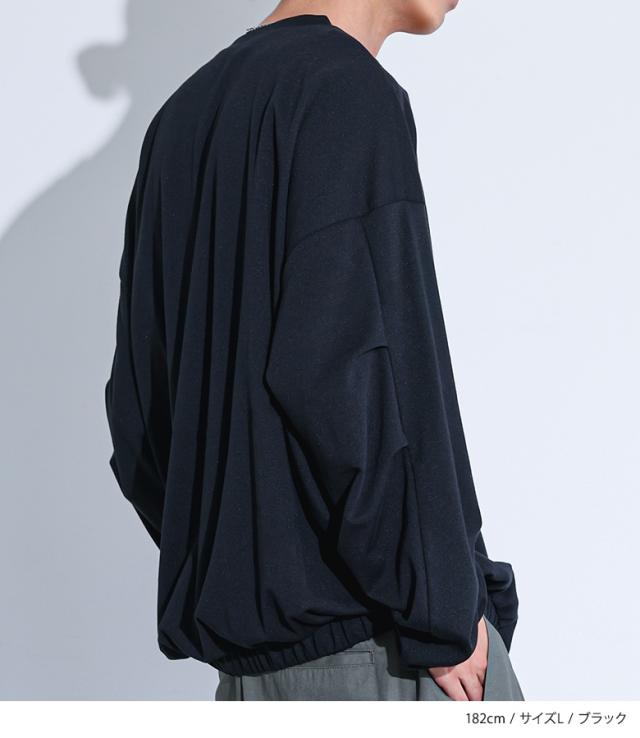 『MDRポンチバルーントップス』【メール便不可】【30】[カットソー 長袖 メンズ トップス ロンT バルーンシルエット クルーネック 裾ゴム タック ポンチ生地 ショート丈 レイヤード 重ね着 綿混 秋 冬 春]