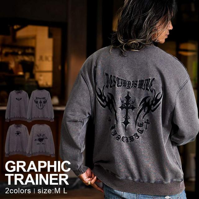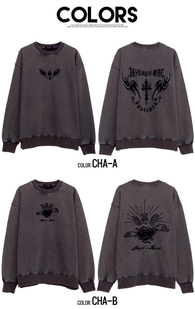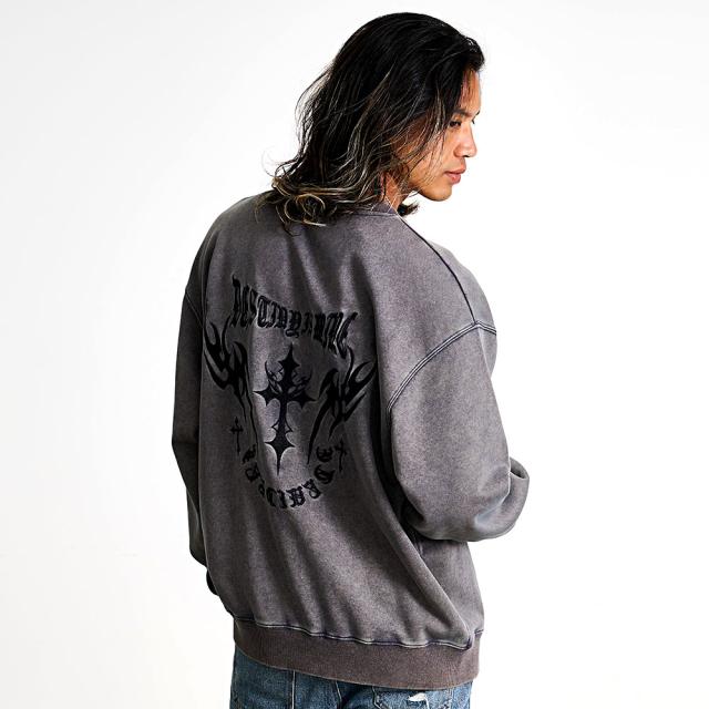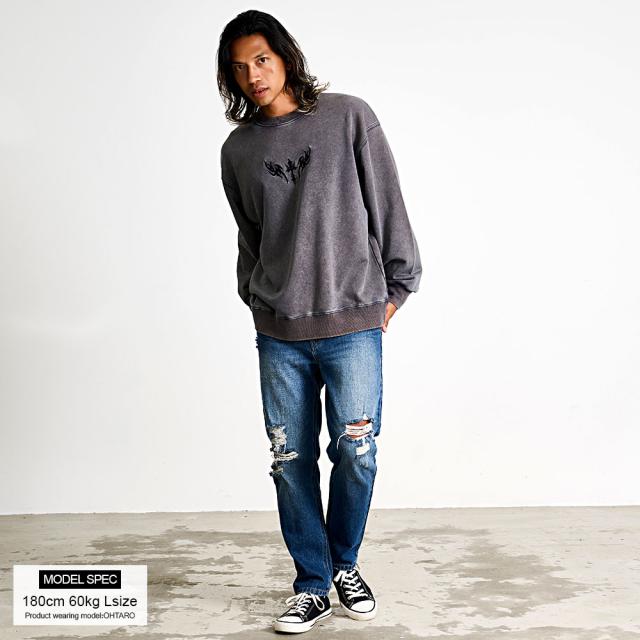 トレーナー メンズ スウェット スエット おしゃれ 刺繍 ヴィンテージ ビンテージ ユーズド 古着風 色落ち ケミカルウォッシュ 長袖 クルーネック ビッグシルエット オーバーサイズ ドロップショルダー ゆったり 大きいサイズ プルオーバー ブラック グレー チャコール 黒 M L XL LL 男性 大人 春服 秋服 冬服 ファッション カジュアル ストリート ストリート系 ストリートファッション モード系 きれいめ シンプル 韓国 韓国系 韓国ファッション 下北沢 下北系 古着 古着系 90s 90年代 2000年代 Y2K 父の日 父の日ギフト 父の日プレゼント 20代 30代 40代 50代 メンズファッション 東京 プレゼント 誕生日 記念日 贈り物 ギフト ケミカルウォッシュトレーナー ヴィンテージ加工スウェット 刺繍ロゴトレーナー 色落ちスエットトップス ドロップショルダートレーナー ビッグシルエットスウェット ゆるシルエットプルオーバー メンズ古着風トップス ユーズドライクトレーナー配送について