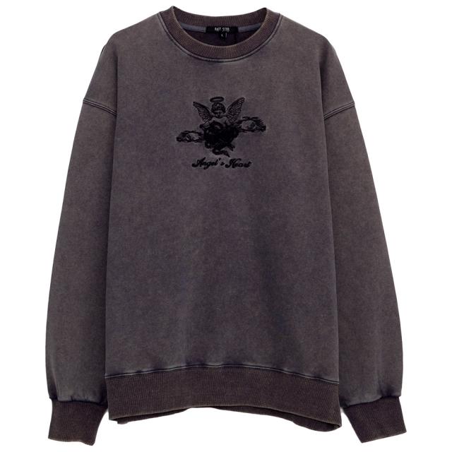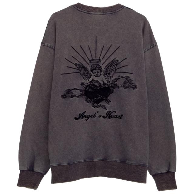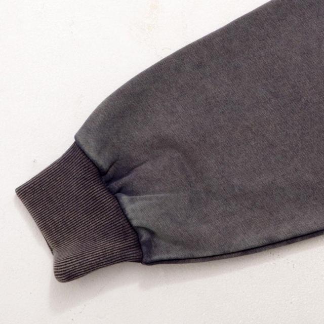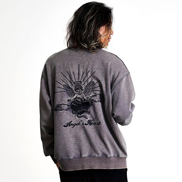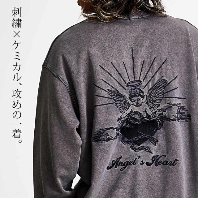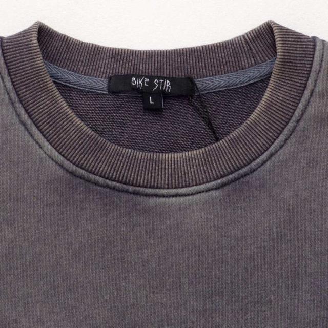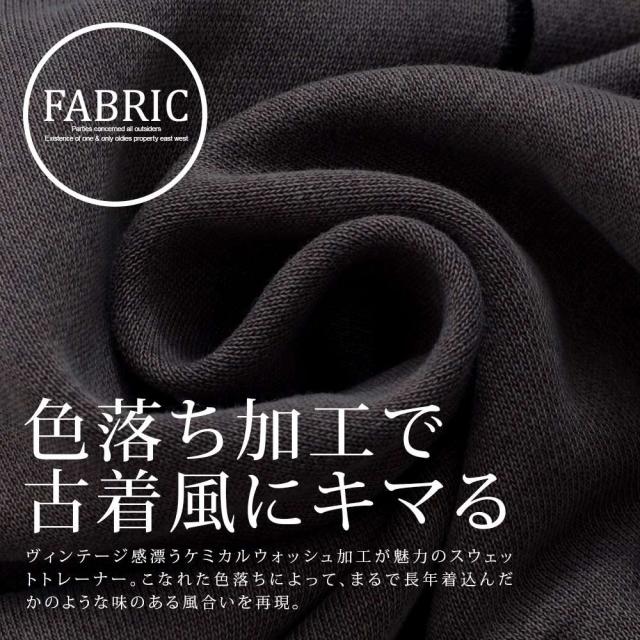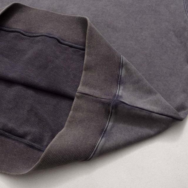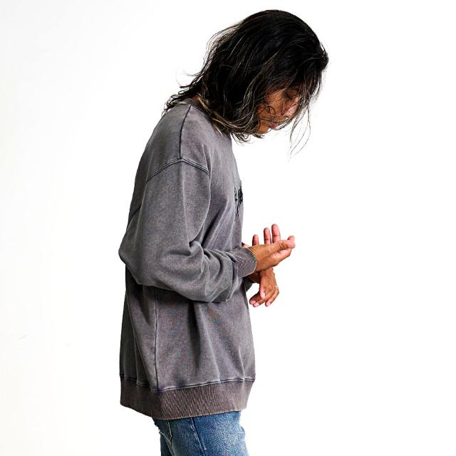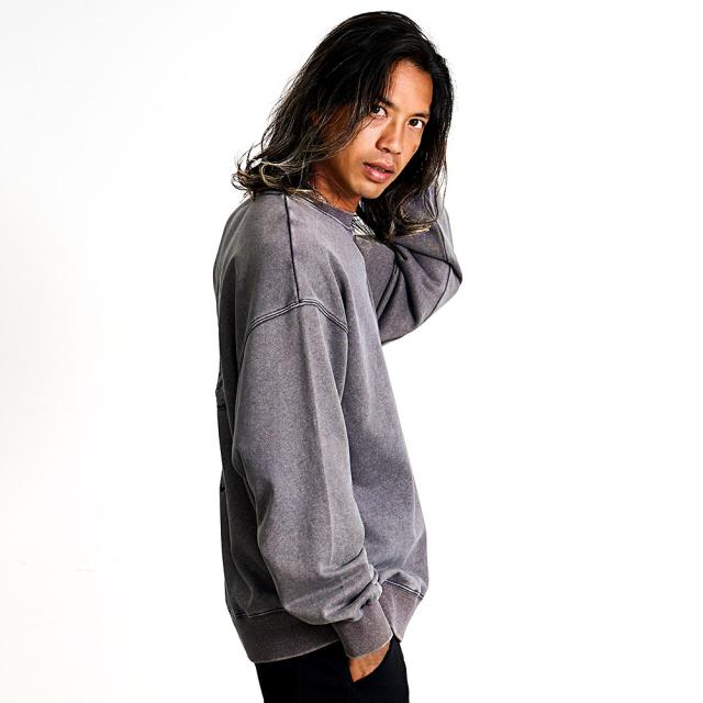 ヴィンテージ感漂うケミカルウォッシュ加工が魅力のクルーネックトレーナー。