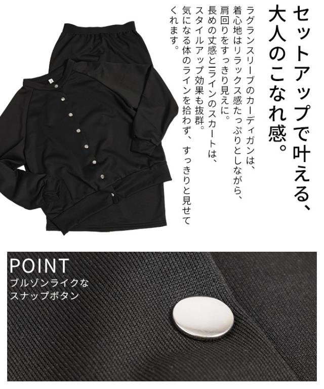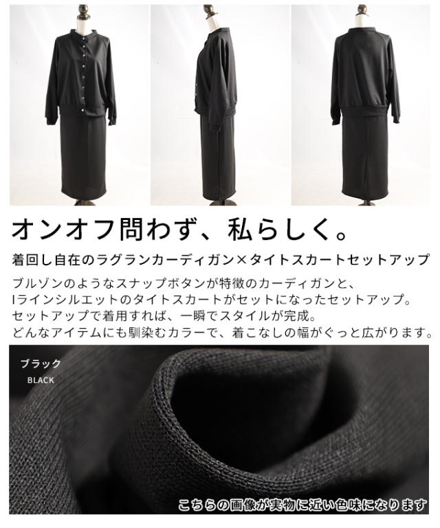 冬新作 着回し自在のラグランカーディガン×タイトスカートセットアップ レディース ファッション セットアップ カーディガン スカート 長袖 ロング ブラック 30代 40代 50代 60代 サワアラモード sawaalamode otona 大人 cawaii 可愛い 洋服 かわいい服 mode-10086