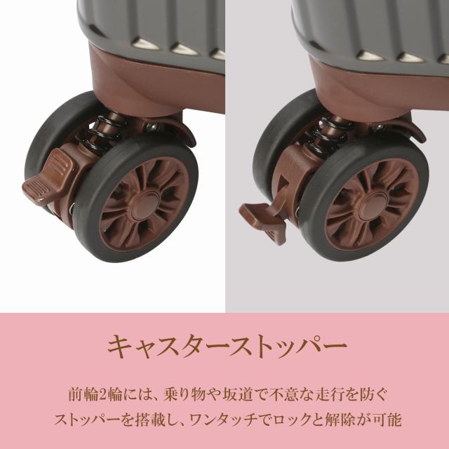 | marie claire 240-6000|16インチスーツケース(コインロッカー・機内持ち込み対応) 1937年創刊のフランスを代表する女性誌から生まれたライフスタイルブランド「marie claire(マリクレール)」。フレンチエスプリを感じさせる上品で洗練されたデザインが魅力で、ファッションからインテリアまで幅広く展開しています。 ■コンパクト&エレガント 16インチサイズで、国内線機内持ち込みやコインロッカー対応の扱いやすいモデル。W350×H450×D230mmと小回りのきくサイズ感で、1〜2泊程度の旅行や出張、週末のお出かけに最適です。容量は26Lから29Lへ拡張可能で、旅先で荷物が増えても安心。ABS/PC素材をマット仕上げにすることで、上品で落ち着いた印象を演出しています。 ■女性に嬉しい充実機能 前輪にはキャスターストッパーを搭載し、電車やバスの揺れでも不用意に動き出さない安心設計。背面には便利なドリンクホルダーを備え、移動中のペットボトルや折りたたみ傘の収納に活躍します。コーナーガードで本体をしっかり保護し、スタイリッシュさと耐久性を両立しました。 ■快適な走行性能 キャスターはコイルサスペンション付きのダブルホイールを採用。路面からの振動を軽減し、安定した静音走行を可能にします。女性でも扱いやすい2.9kgの軽量設計で、持ち運びもスムーズです。 ■安心のセキュリティ 施錠はダイヤル式TSAロックを搭載。海外旅行でも安心して利用でき、セキュリティ面でも信頼性を確保しています。付属のネームタグで、旅先での識別性もアップ。 marie claireらしいフレンチエスプリをまとった、上品で機能的な16インチスーツケース。コンパクトながら収納力と機能性を兼ね備え、女性の旅をより快適にサポートします。 |