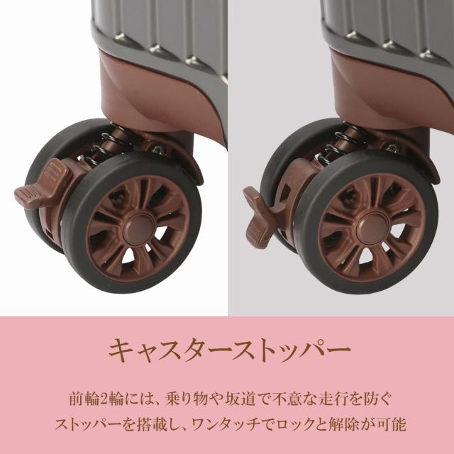 | marie claire 240-6001|19インチスーツケース(機内持ち込み対応・拡張機能付き) フランス発の女性誌から生まれたライフスタイルブランド「marie claire(マリクレール)」。エスプリを感じさせるデザインと実用性を兼ね備え、女性の日常や旅を彩るアイテムを幅広く展開しています。 ■機内持ち込み対応サイズで使いやすい 本体サイズはW350×H470×D230mm、総外寸はW370×H550×D230mmで、国内線機内持ち込みに対応。容量は34Lから38Lへ拡張可能で、2〜3泊程度の旅行や出張にちょうど良いサイズ感です。小ぶりな16インチでは不安、でも大型は大げさ…そんな女性にフィットする万能モデルです。 ■上品なマット素材&耐久性 素材はABS/PCのハイブリッド仕様。マット加工で落ち着いた印象を持ちつつ、軽量性と耐衝撃性を両立。縁を守るコーナーガード付きで、持ち運びや保管の際も安心です。 ■便利な拡張機能&快適収納 エキスパンダブル機能を搭載し、ファスナーを開くだけでマチ幅を拡張。旅先で荷物が増えてもスマートに対応できます。内部はシンプルながら整理しやすい構造で、洋服や小物をきちんと仕分けして収納可能です。 ■女性に嬉しい機能性 前輪にはキャスターストッパーを備え、電車やバスの停車時に不用意な転がりを防止。背面にはドリンクホルダーを装備し、ペットボトルや折りたたみ傘を収納できるなど、女性の旅行シーンを考えた便利な仕様です。 ■安定した静音キャスター コイルサスペンション付きのダブルキャスターを採用。振動を軽減し、静音性と走行安定性を両立しています。重量は約3.4kgで、女性でも扱いやすい軽量設計です。 ■安心のセキュリティ 施錠はTSA対応のダイヤルロック式。海外旅行でも安心して使え、鍵不要でシンプルに操作できます。付属のネームタグで、自分の荷物をすぐに見分けられるのも便利です。 marie claire 240-6001は、機内持ち込み可能サイズでありながら拡張機能や女性に嬉しい装備をしっかり搭載。上品なデザインと高い実用性で、週末旅行から出張まで幅広く活躍するスーツケースです。 |