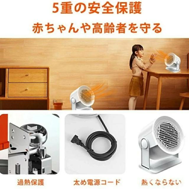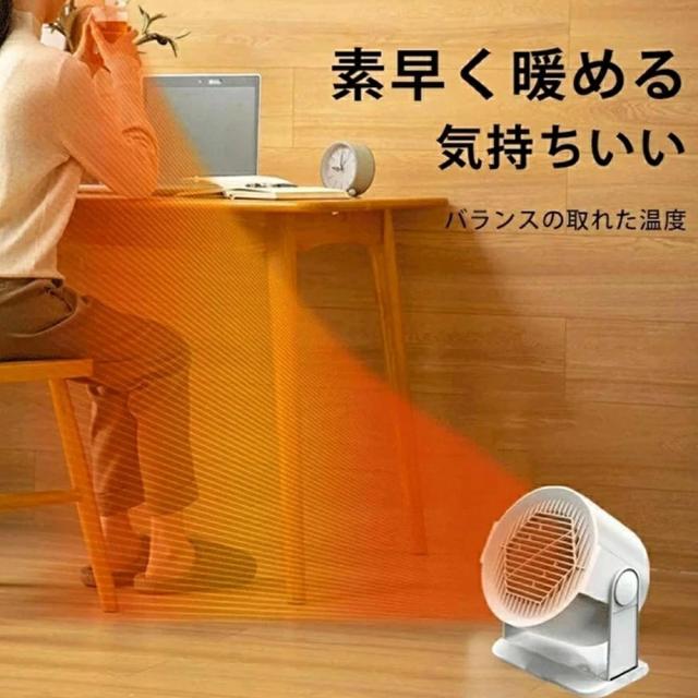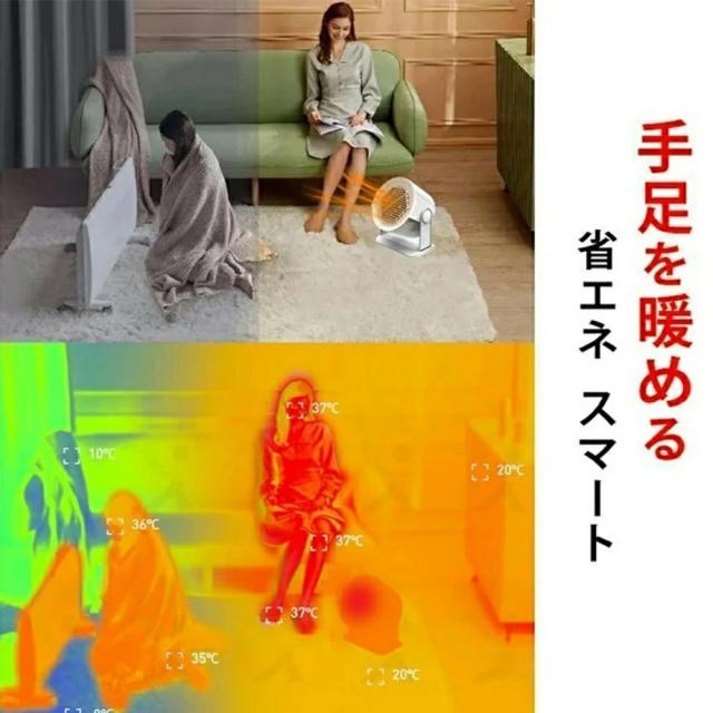 - 速暖性が高く、電源を入れて数秒でポカポカになります。首振り機能でムラなく暖まるのが嬉しいです。冷暖兼用なので一年中使えて便利。音も静かで寝室にもぴったりです。