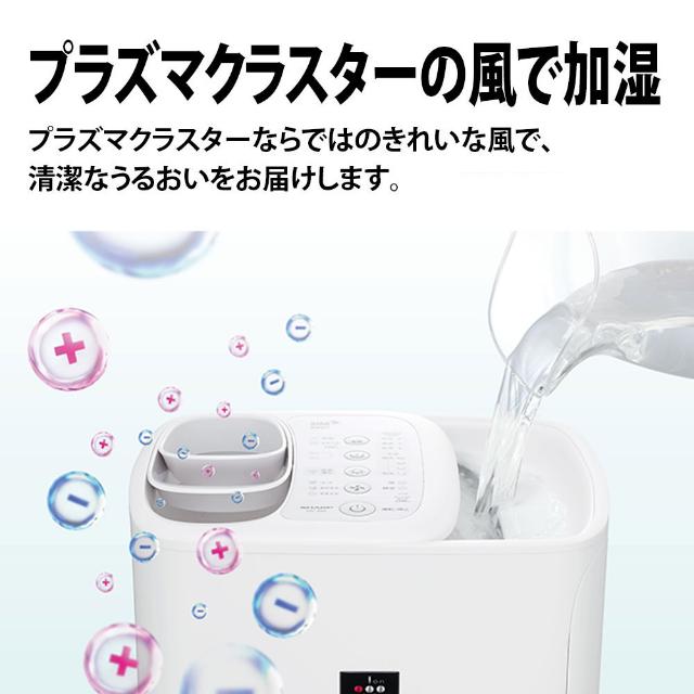 SHARP シャープ プラズマクラスター 加湿器 HV-T55 ハイブリッド式 選べる給水方式 清潔設計 加湿量 550mL/h 加湿の適用床面積 プレハブ洋室 15畳 木造和室 9畳