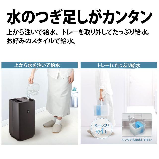 ●温度・湿度のWセンサー ●静音運転 ●プラズマクラスター空気浄化運転 ●水位表示ランプ ●湿度表示ランプ ●お手入れランプ ●切タイマー ●フィルター乾燥 ●転倒自動停止装置