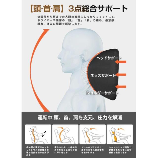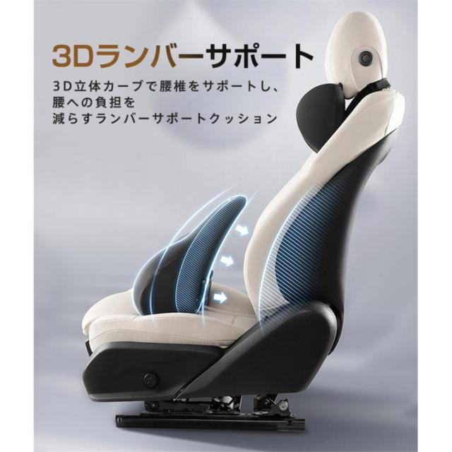 ◆運転の疲れを解消、正しい姿勢をキープできる腰当てとネックパッド!