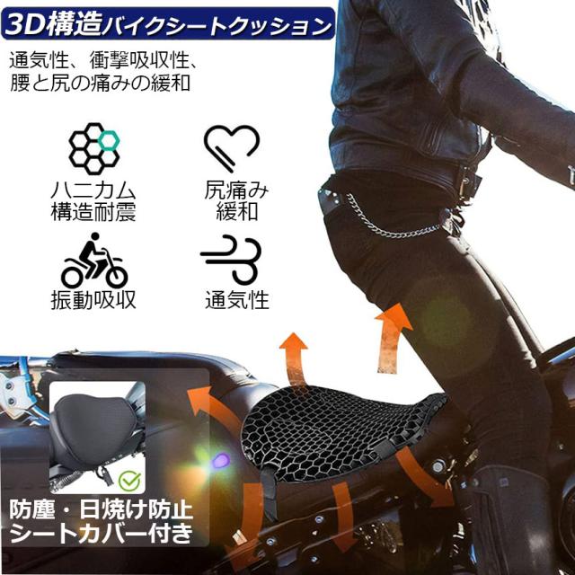 バイクシートクッション ゲルクッション ゲルシートカバー 3D メッシュシートカバー 四季通用 通気 衝撃吸収 人間工学 断熱 日焼け止め 濡れ防止 換気 バイク シートカバー スクーター用 メッシュシートカバー 汎用品 オートバイシートカバー