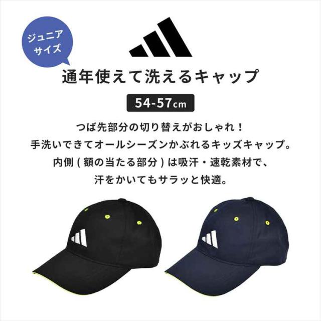 アディダス キッズ キャップ adidas 男の子 帽子 無地 小学生 男子 子ども ボーイズ 黒 ブラック ネイビー キャップ帽 かっこいい 日差し 暑さ 熱中症 対策 定番 手洗い 吸汗 速乾 サイズ調整可能 ジュニアサイズ 通学 外遊び 屋外 男児 ロゴ 野球帽 ベースボールキャップ